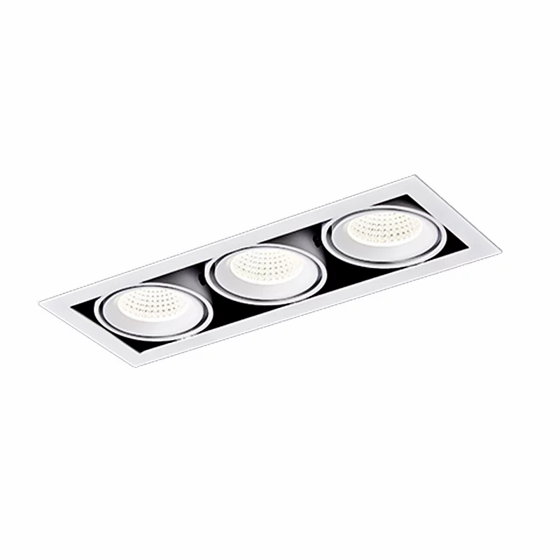 Illuminate your space with the sophisticated Recessed 3 LED Downlight W277mm by 3A. Crafted for commercial-grade settings, this downlight exudes quality and style with its sleek design and versatility. The head of the lamp can be adjusted by 15°, ensuring optimal lighting coverage for any environment. Featuring a deep recessed light source and LM-80 certified LED chip, this fixture promises a long life-span and minimal power consumption, making it a sustainable lighting solution. With a built-out driver and Australian standard plug, installation is a breeze, delivering convenience alongside superior illumination. Operating at 240V, this downlight offers integrated LED (SMD) technology with a wattage of 3X10W, providing a customizable colour temperature range of 3000K to 5000K. Emitting 2400lm to 2600lm of brightness, the CRI of over 80 ensures high colour accuracy. Dimmable and suitable for outdoor use with an IP54 rating, this downlight guarantees adaptability and durability. The elegant white and black aluminium finish adds a touch of sophistication to any space, while the 3-year replacement warranty underscores the product's quality and reliability. For a lighting solution that combines functionality with style, look no further than this expertly-designed downlight from 3A.Specifications