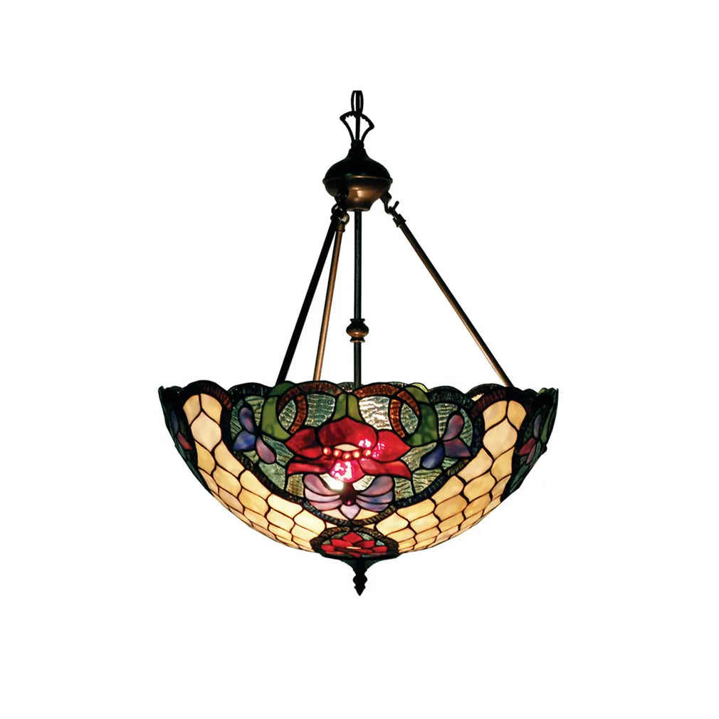 Elegance meets functionality with the GG Bros Tiffany Style Pendant Light. Crafted with a stained glass shade in a mesmerizing multi-color design and a sturdy dark bronze metal suspension, this fixture exudes timeless charm. Measuring 51cm in diameter, its intricate craftsmanship adds a touch of sophistication to any space, making it a striking centerpiece. Illuminate your indoor sanctuaries with this exquisite pendant featuring two lights and a chain suspension of 100cm with an additional 75cm for customizable positioning. The E27/ES bulb fitting allows for easy installation, supporting a maximum wattage of 60W. With a 1-year manufacturer's warranty, this TL-20053/20CL model is ideal for indoor and dry area use, bringing warmth and style to your living spaces while enhancing the ambiance with its radiant glow.Specifications