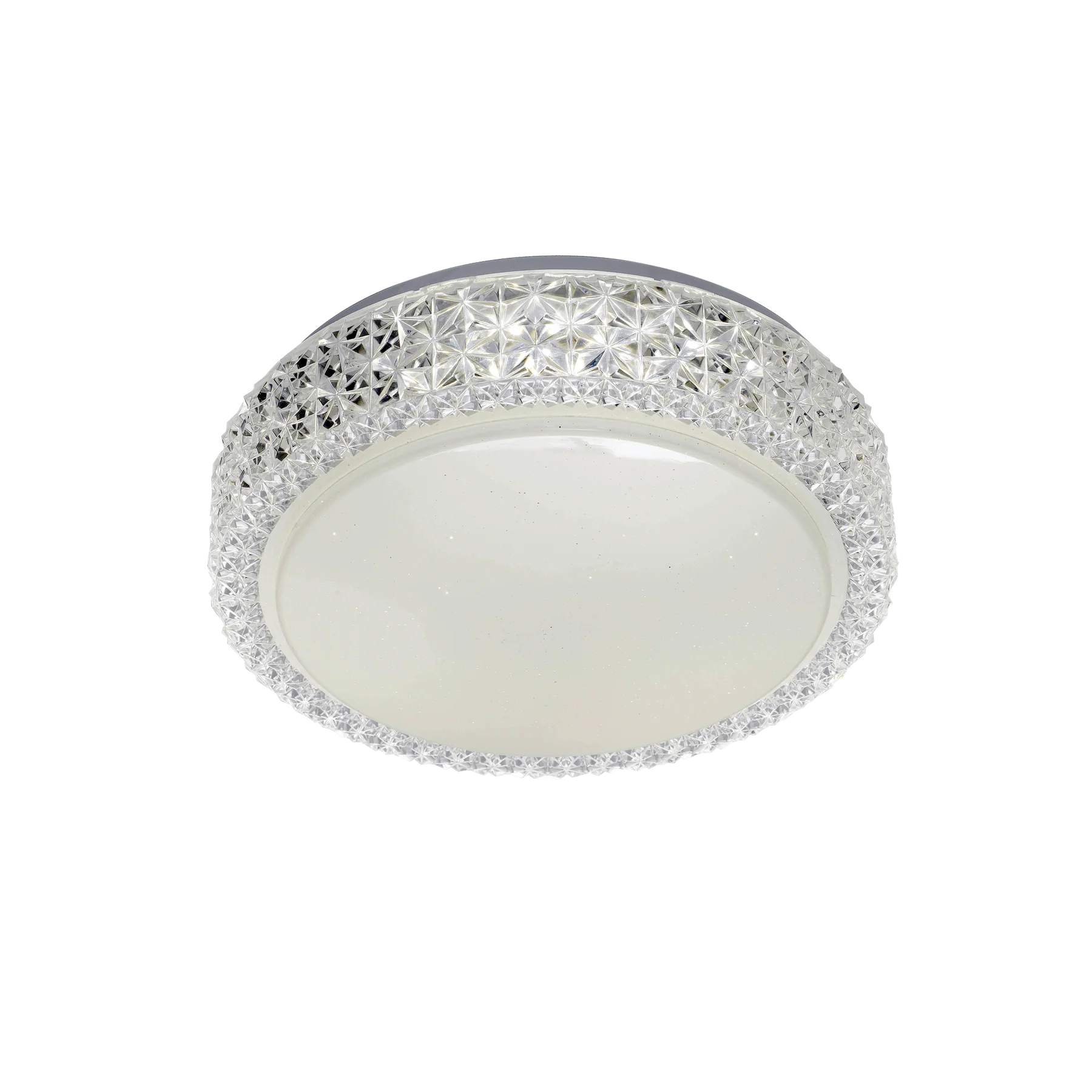Elevate your living space with the timeless elegance of the Telbix Amelia LED Oyster ceiling light. This decorative luminaire transcends mere illumination, becoming a statement piece that captivates even when not in use. Crafted with a blend of opulent Opaline and Clear materials, this fixture boasts a unique acrylic lampshade design that mesmerizes with its starlight effect when switched on. The Amelia LED Oyster effortlessly infuses a touch of magic into any room, showcasing a clear crystal pattern that diffuses light in a truly enchanting manner. Unveiling a harmonious fusion of artistry and functionality, this ceiling light offers a perfect balance of style and performance. With an integrated LED base and a wattage of 18W, this fixture delivers a luminous output of 1450 lumens across various color temperatures ranging from 3000K to 5000K. Designed for indoor use, the Amelia OY28-3C features a 3-year replacement warranty, ensuring lasting quality and reliability. Let this Telbix creation illuminate your space with its enchanting allure, transforming any room into a sanctuary of light and beauty.Specifications