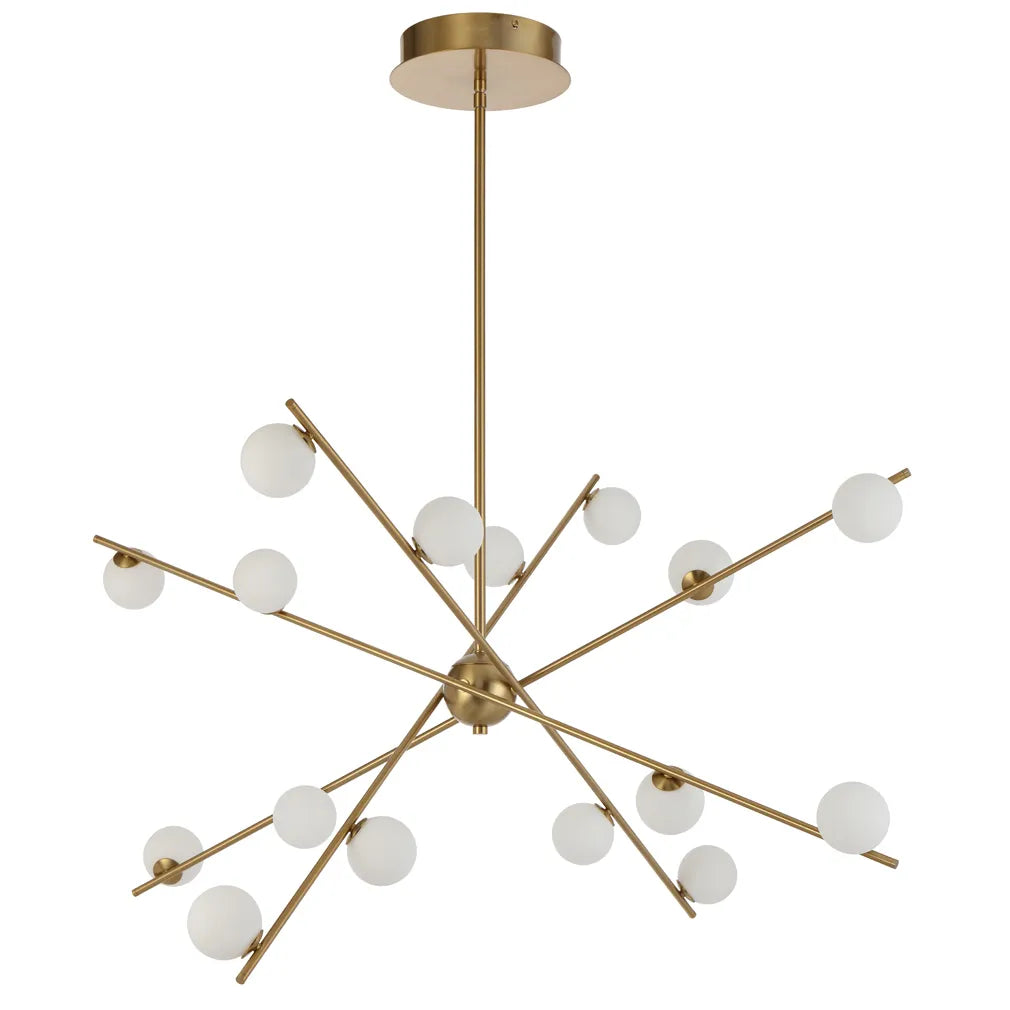 Add a touch of elegance to your space with the captivating Captiva 16 Light Pendant. Available in sophisticated Antique Gold and Black finishes, this fixture boasts opal matte glass sphere shades that blend modern aesthetics with timeless charm. LED integrated and TRIAC dimmable, this pendant offers versatile lighting solutions, emitting a warm white light at 3000K with 2064 lumens. With a durable iron and glass construction, this pendant is the perfect statement piece, ideal for any room in your home.Specifications
