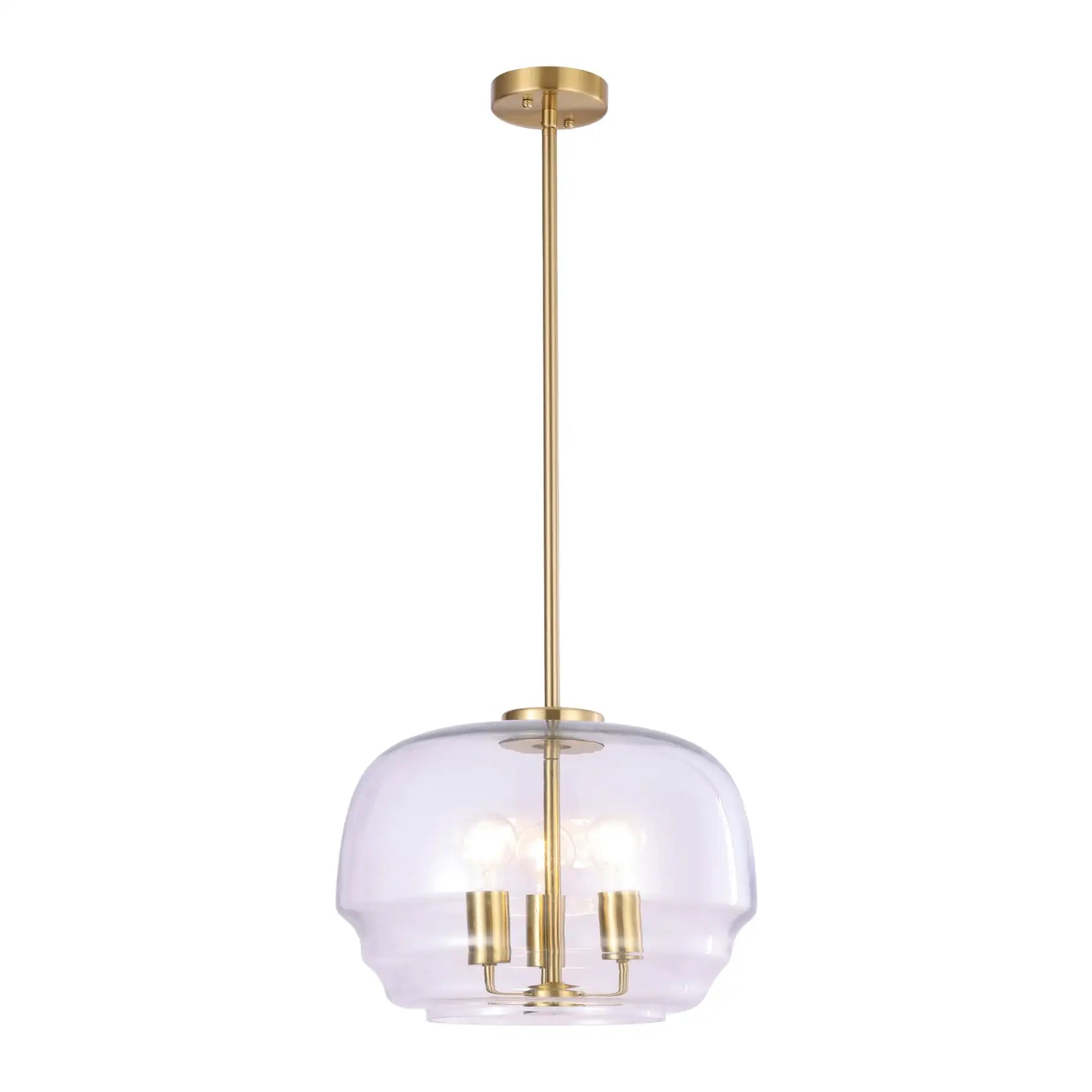Elevate your indoor space with the Cuad Interior Clear Wine Glass Shape Glass Shade Pendant Light. This sophisticated single pendant light features a stylish wine glass shape crafted from high-quality glass and iron materials, complemented by elegant brass hardware and a 1.5m brass rod for suspension. With a maximum wattage of 40W per lamp holder (3xE27), this pendant light exudes a warm and inviting glow while adding a touch of modern charm to any room. Enjoy the assurance of a 1-year replacement warranty and the confidence that comes with a product designed for superior quality and lasting elegance.Specifications