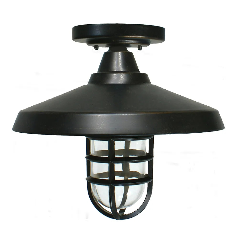 Inspired by the timeless allure of nautical design, the Deckhouse Antique Bronze Under Eave Light exudes a classic charm that elevates any exterior space. Crafted for durability, this fixture is ideal for adorning exterior walls under covered areas, transforming patios and entrances with its elegant presence. Featuring a cage design enveloping a hand-blown glass shade and an E27 lamp holder, the Deckhouse radiates a warm glow that creates a welcoming ambiance. Compatible with LED globes, this light fixture offers both style and energy efficiency for your outdoor settings. Standing at a height of 320mm and a width of 350mm, the Deckhouse boasts a robust construction of powder-coated cast aluminum and clear glass, ensuring longevity even in outdoor environments. With an IP44 rating suitable for indoor and outdoor under covered installation, this light fixture is a versatile lighting solution that seamlessly blends functionality and aesthetics. While not dimmable, this fixture accommodates up to 60W globe wattage with an E27/ES/Edison Screw base, promising reliable illumination that enhances the ambiance of your outdoor spaces. Complemented by an Antique Bronze finish, the Deckhouse is a sophisticated choice for those seeking a blend of style and practicality in their lighting fixtures.Specifications