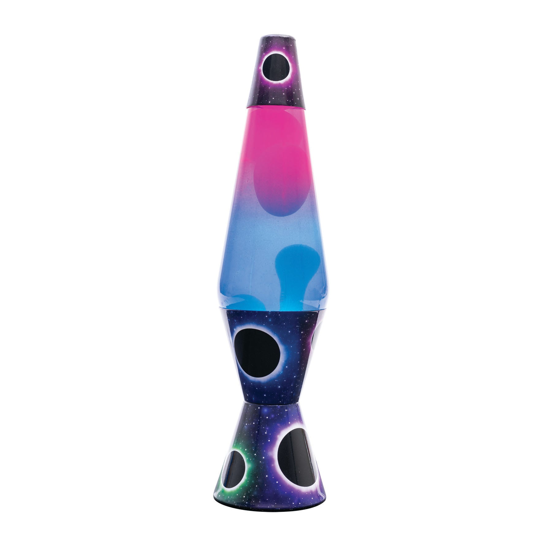 - Features pink and blue gradient glass body filled with lava that swirls and ripples when lit