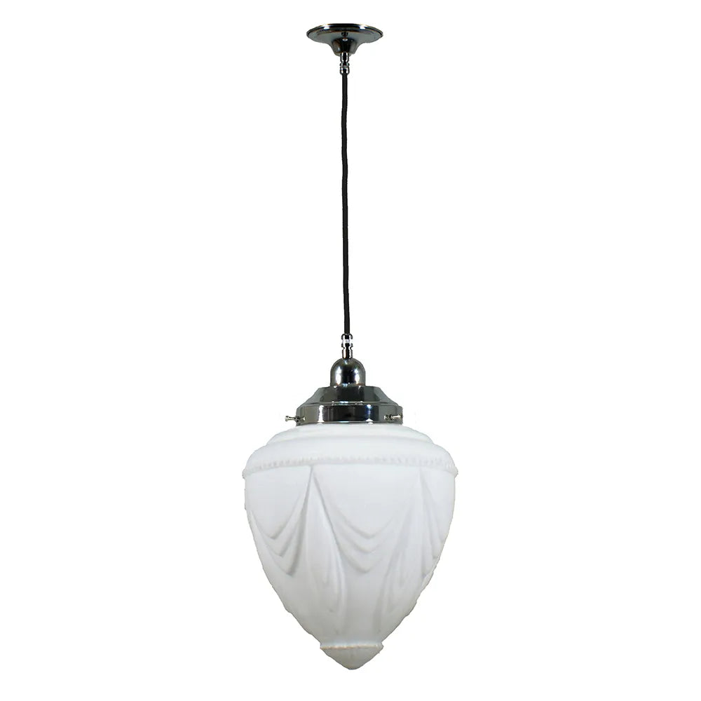 Illuminate your living space with the captivating Empire Collection Pendant Light from Lighting Inspirations. This exquisite piece features a sleek chrome finish and a stunning 8" Empire Opal Matt Glass shade, adding a touch of elegance to any room. Designed with precision, this pendant light stands tall at an overall height of 1000 mm, making it a striking addition to your indoor decor. Crafted from durable steel, this pendant light boasts a single lamp holder compatible with B22 / BC globes. The product's technical details reveal an operation voltage of 240V, ensuring optimal performance. With a 1-year replacement warranty, this pendant light offers both style and reliability. To enjoy the beauty and brilliance of this fixture, remember to enlist the expertise of a licensed electrician during installation. Elevate your home ambiance with the Empire Pendant Light and bask in its radiant glow.Specifications