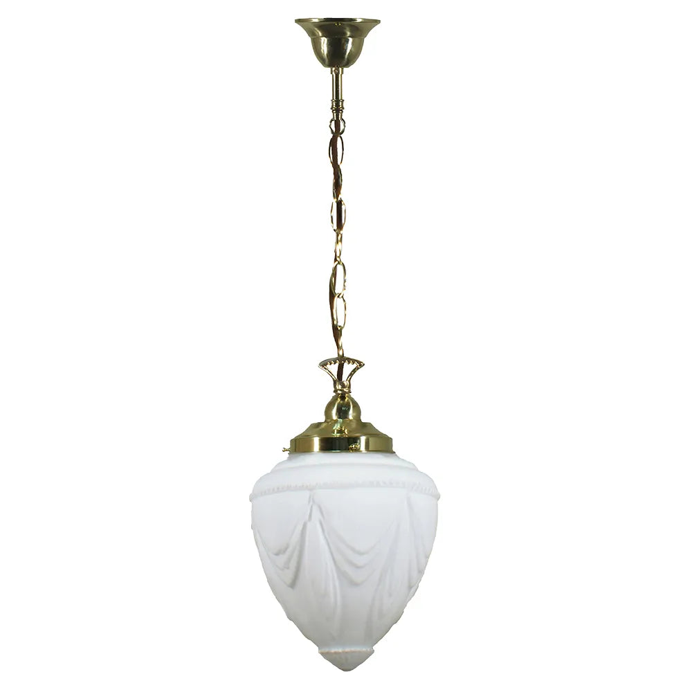 Elegance meets functionality with the Lighting Inspirations Empire Collection Pendant Light. Designed for indoor use, this exquisite pendant light features a stunning 8" Empire Opal Matt Glass shade supported by a durable steel frame finished in a sleek Brass color. The product's dimensions, with a width of 200 mm and an overall height of 1000 mm, make it a versatile lighting solution for various spaces. With an operation voltage of 240V and a B22/BC globe base, this pendant light requires professional installation by a licensed electrician. The product comes with a 1-year replacement warranty, ensuring peace of mind for buyers. The lack of included globe(s) allows for customization based on personal preferences, making this pendant light a perfect blend of style and practicality for any interior setting.Specifications