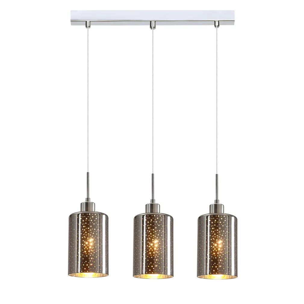 Step into the world of elegance and sophistication with CLA Lighting's Espejo pendant light. This exquisite chrome luminaire boasts an oblong shade adorned with a captivating dotted effect, illuminating any space with a mesmerizing brilliance when switched on. The Espejo pendant light is a true masterpiece that effortlessly blends modern design with a touch of glamour, making it a perfect addition to any contemporary interior decor. Crafted from a harmonious fusion of Iron and Glass, the Espejo pendant light exudes a sense of luxury and style. Measuring 180mm in length and 120mm in diameter, this fixture stands at an overall height of 325mm, including a 3000mm cable for easy installation and adjustment. With the ability to accommodate 1 E27 globe (sold separately) of up to 72W, this luminaire not only promises to illuminate your space beautifully but also comes with a 1-year Replacement Warranty for peace of mind. Elevate your surroundings with the Espejo pendant light and bask in the radiance of its exquisite design.Specifications