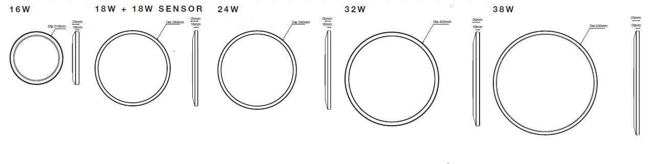 - 16W LED with 1600lm - 2000lm - 1700lm output, compatible with Martec® lighting dimmers.