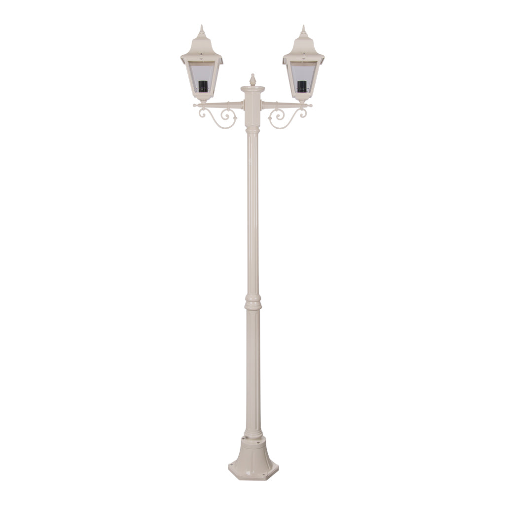 Illuminate your outdoor space with the GT-237 Paris Twin Head Medium Post Light, a stunning addition to any garden or pathway. Crafted with a die-cast Aluminium body and a moulded acrylic lens, this 2-light post light stands tall at 2090mm, offering a blend of elegance and durability. Available in various colors including Beige, Black, Burgundy, Green, and White, this Italian-made fixture, assembled and powder coated in Australia, exudes quality and style. With an IP Rating of IP43 and a 1-year warranty for peace of mind, the Paris post light requires 2 B22 lamps to create a warm and inviting outdoor ambiance.Specifications