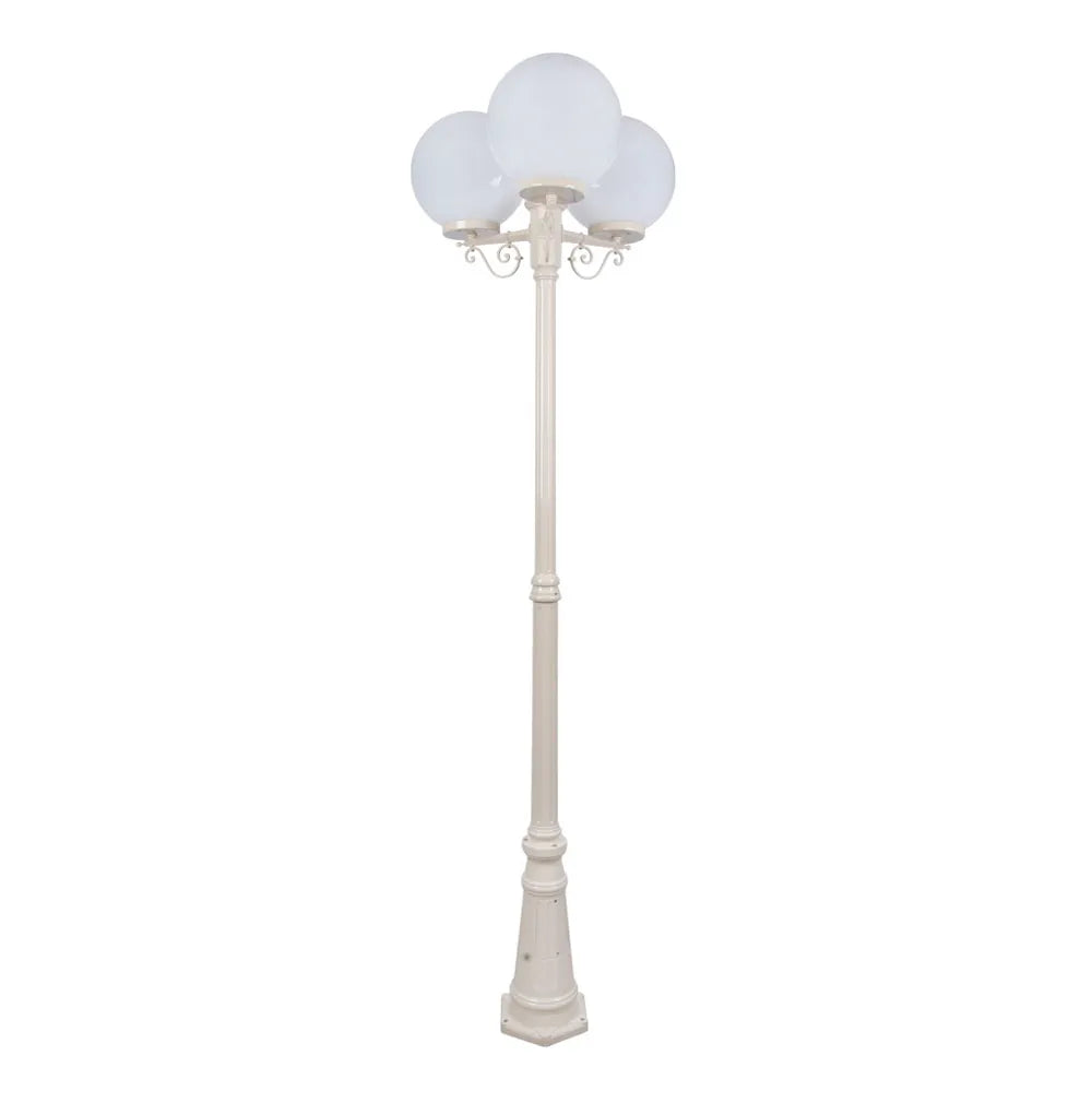 Siena 3 light 2.4m post lights, die-cast aluminium body complete with 300mm opal acrylic sphere. Made in Italy, assembled and powder coated in Australia.