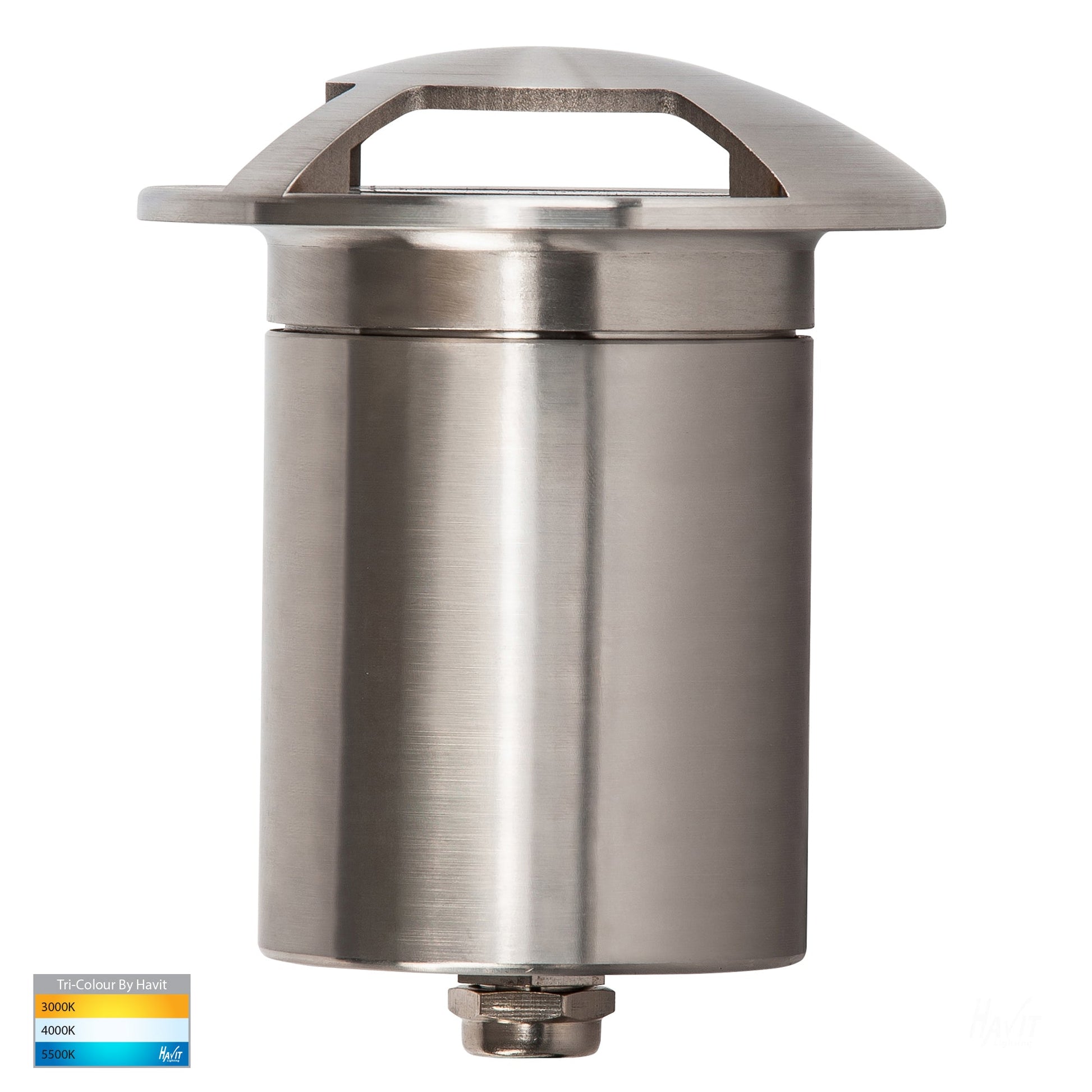 Elevate your home's ambiance with these sophisticated LED in-ground driveway lights that add a touch of modern elegance to your outdoor space. Crafted with a robust 316 marine grade body, this fitting boasts a sleek design and a singular cutout that allows radiant light to shine through, enhancing your driveway or outdoor pathways. With a remarkable load capacity of up to 500kg, this fitting ensures durability and functionality without compromising on style. Designed to withstand the elements, the Tri Colour LED in-ground light features an IP65 rating, offering reliable protection against harsh weather conditions. Included with a complimentary replaceable LED globe for added convenience, this fitting not only illuminates your surroundings with a lumen output ranging from 270lm to 300lm but also provides a choice of light colour temperatures from 3000K to 5500K. With its 12v power requirement, ensure a seamless installation by using a DC driver, available for purchase separately from our range of specialised Havit drivers under the "LED Lighting Accessories" section on our website.Specifications