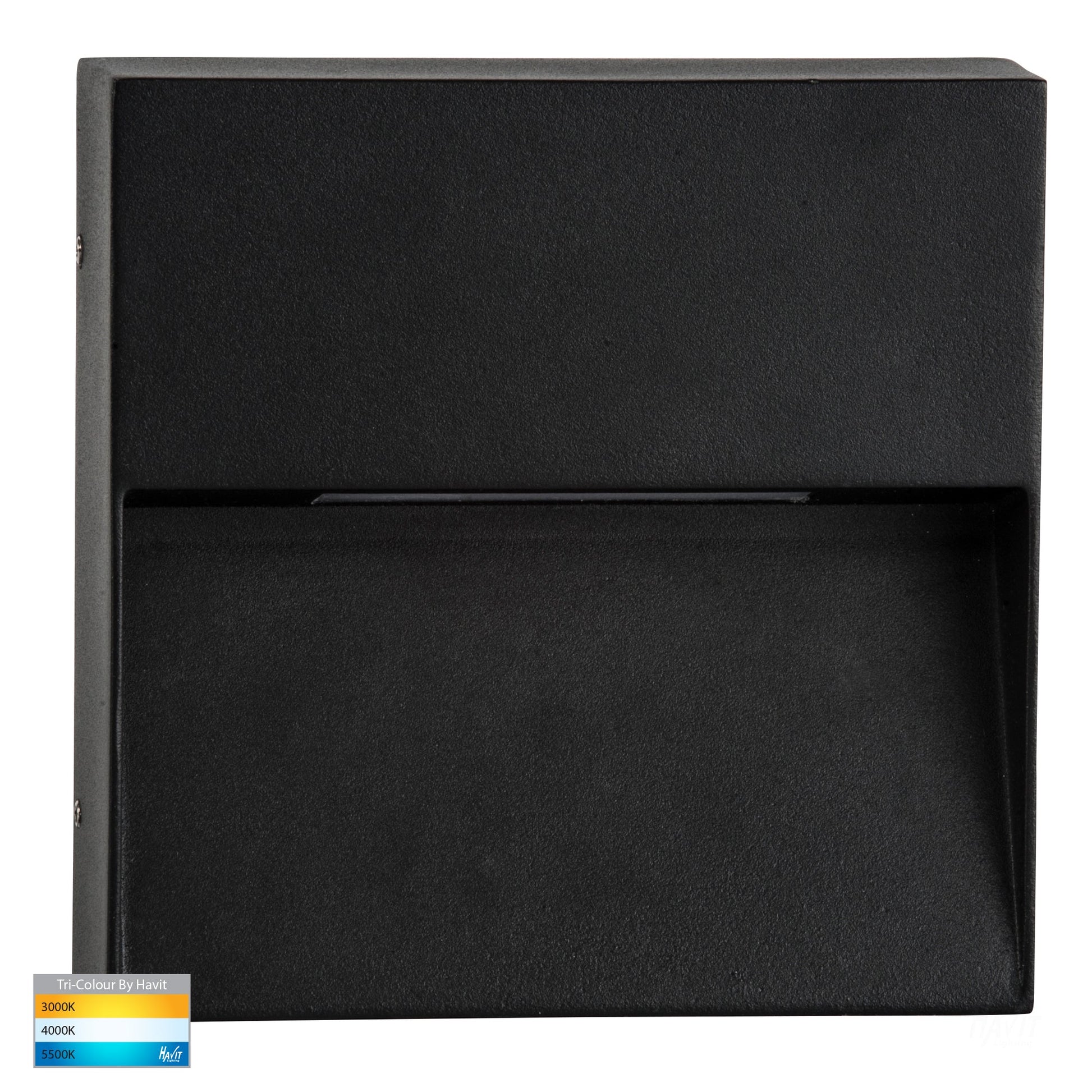 Elevate your outdoor space with the Havit Lighting Virsma Integrated LED Wall Light. Designed with sleek sophistication in mind, this black aluminium fixture boasts a modern square shape measuring 148 mm in width and height, with a modest projection of 37 mm. Emitting a warm glow with a choice of three color temperatures (3000K, 4000K, 5500K), this IP54-rated wall light ensures durability and style in any outdoor setting. Operating at 240V with an integrated LED globe base, this fixture consumes only 4W of power while delivering a luminous output ranging from 110lm to 120lm. Featuring a high CRI of over 80, the Havit Lighting Virsma Wall Light offers reliable illumination that showcases the true colors of your outdoor area. With a 3-year replacement warranty, this fixture combines practicality and elegance, perfect for enhancing your outdoor ambiance.Specifications