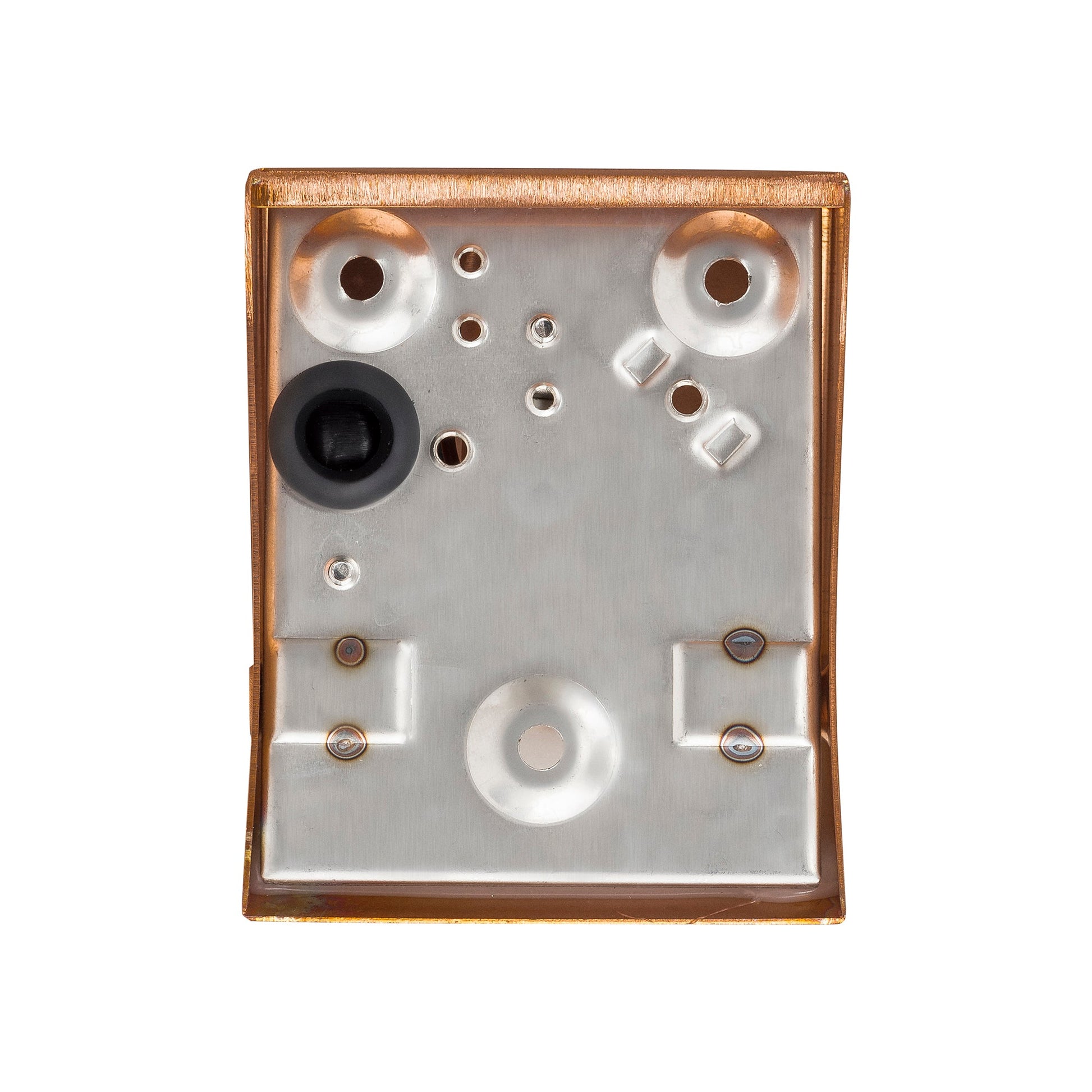 Elevate your outdoor ambiance with the Hv3608-Cp Taper Copper Wedge Step Light. This exquisite mini wedge exterior wall light boasts a stunning Copper Body with a durable Stainless Steel base, exuding both elegance and resilience. Emitting a gentle glow through Frosted Tempered Glass, this light fixture is designed to withstand outdoor elements with an IP44 rating, ensuring longevity and performance in various weather conditions. Powered by a 1.5W G4 LED globe and operating at an Input Voltage of 12V DC, this light not only illuminates your space beautifully but also does so efficiently. Choose between two captivating options: HV3608C-CP with a cool 5500K Color Temperature emitting 110 lumens, or HV3608W-CP with a warm 3000K Color Temperature producing 90 lumens. With a 2-year replacement warranty, this step light ensures both quality and peace of mind. To maximize its performance, remember to pair it with a suitable 12V DC LED driver. Access detailed product information, including Data Sheets, Installation Instructions, and IES Files, for seamless integration and an optimized lighting experience. Illuminate your surroundings with sophistication and functionality using the Hv3608-Cp Taper Copper Wedge Step Light.Specifications