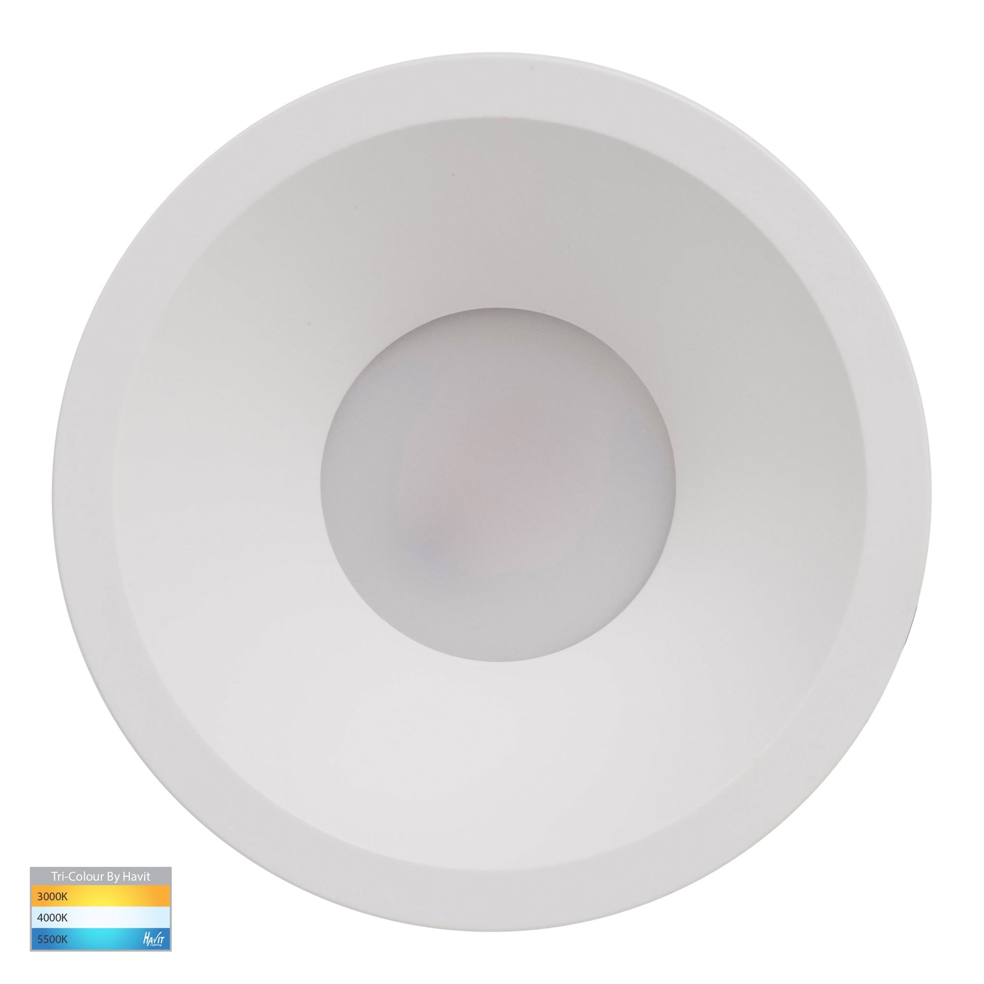 Enhance your living spaces with the elegance and efficiency of the HV5528T-WHT Fixed LED Downlight. This sophisticated lighting solution features a sleek PC white finish frame that seamlessly blends into any modern décor. Designed with a durable aluminium heat sink, this downlight not only illuminates your room with precision but also ensures optimal heat dissipation for long-lasting performance. With a 90° beam angle and TRI Colour functionality, you can customize the ambiance to suit various moods and settings, offering versatility in lighting design. Experience superior lighting control with the Triac Dimmable feature of this downlight, allowing you to adjust the brightness levels according to your preference. Boasting an IP54 rating for dust and moisture resistance, this fixture is suitable for a range of indoor applications. The HV5528T-WHT comes equipped with a built-in 9W LED, providing energy-efficient illumination with three color temperature options: 3000K, 4000K, and 5500K. Backed by a 2-year replacement warranty, this downlight ensures both performance reliability and peace of mind for your lighting needs.Specifications