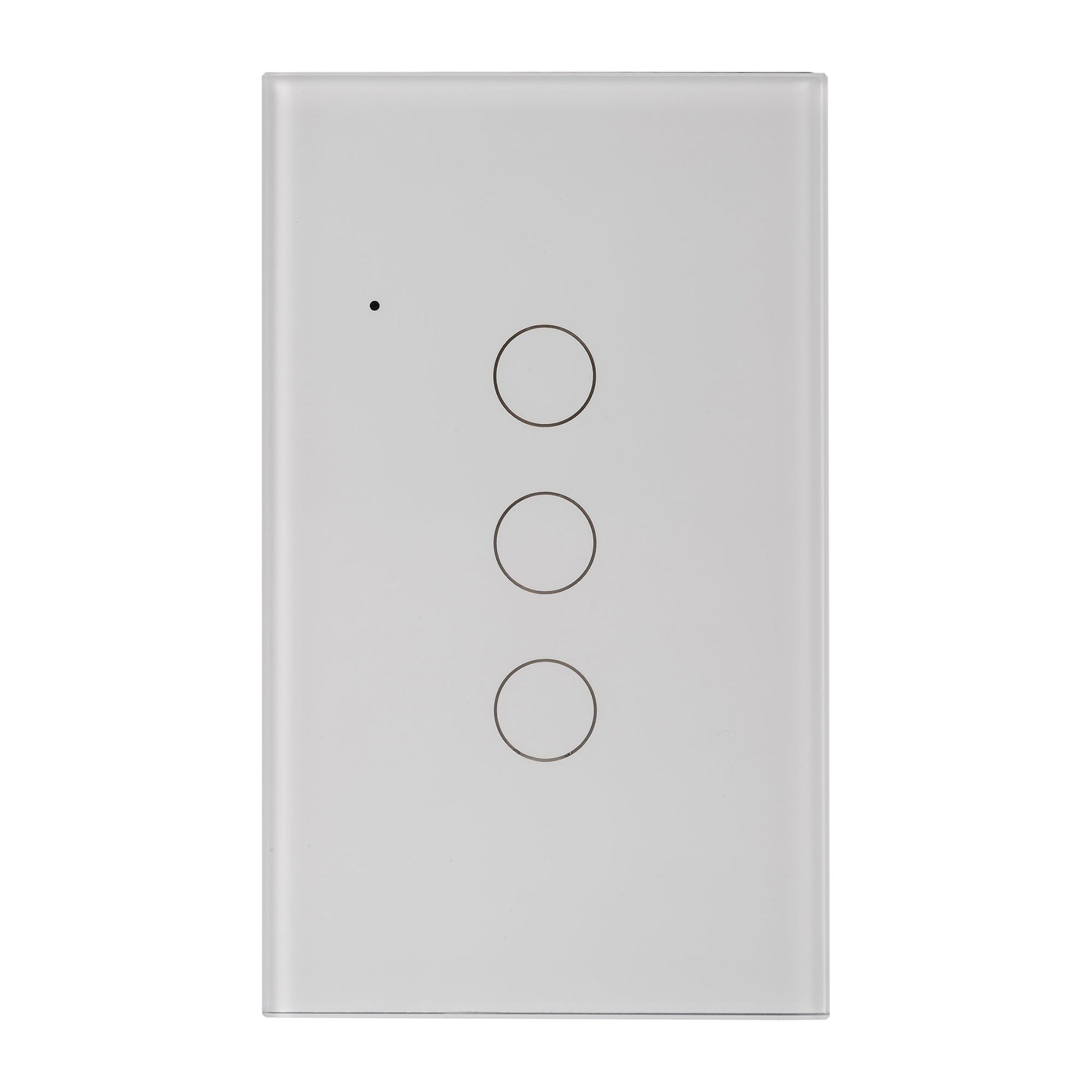 Enhance your living space with the Three Gang WiFi Wall Switch, a sleek and modern addition to any home. Crafted with a sophisticated GLASS FRONT panel, this smart switch offers both style and functionality. Effortlessly control your lighting with the Tuya App, compatible with Google Home and Amazon Alexa for seamless integration into your smart home setup. With an IP Rating of IP20, this switch is designed to withstand everyday use while maintaining its elegance. Designed for convenience, the Three Gang WiFi Wall Switch can handle a total load of 3x 150W LED, ensuring ample lighting control for your space. Operating at an INPUT VOLTAGE of 240V, this switch offers versatility by allowing installation with or without a Neutral Cable. For more technical details, refer to the provided DATA SHEET and INSTALL SHEET for a comprehensive guide on setup and usage. Experience modern living at your fingertips with this innovative and stylish wall switch.Specifications