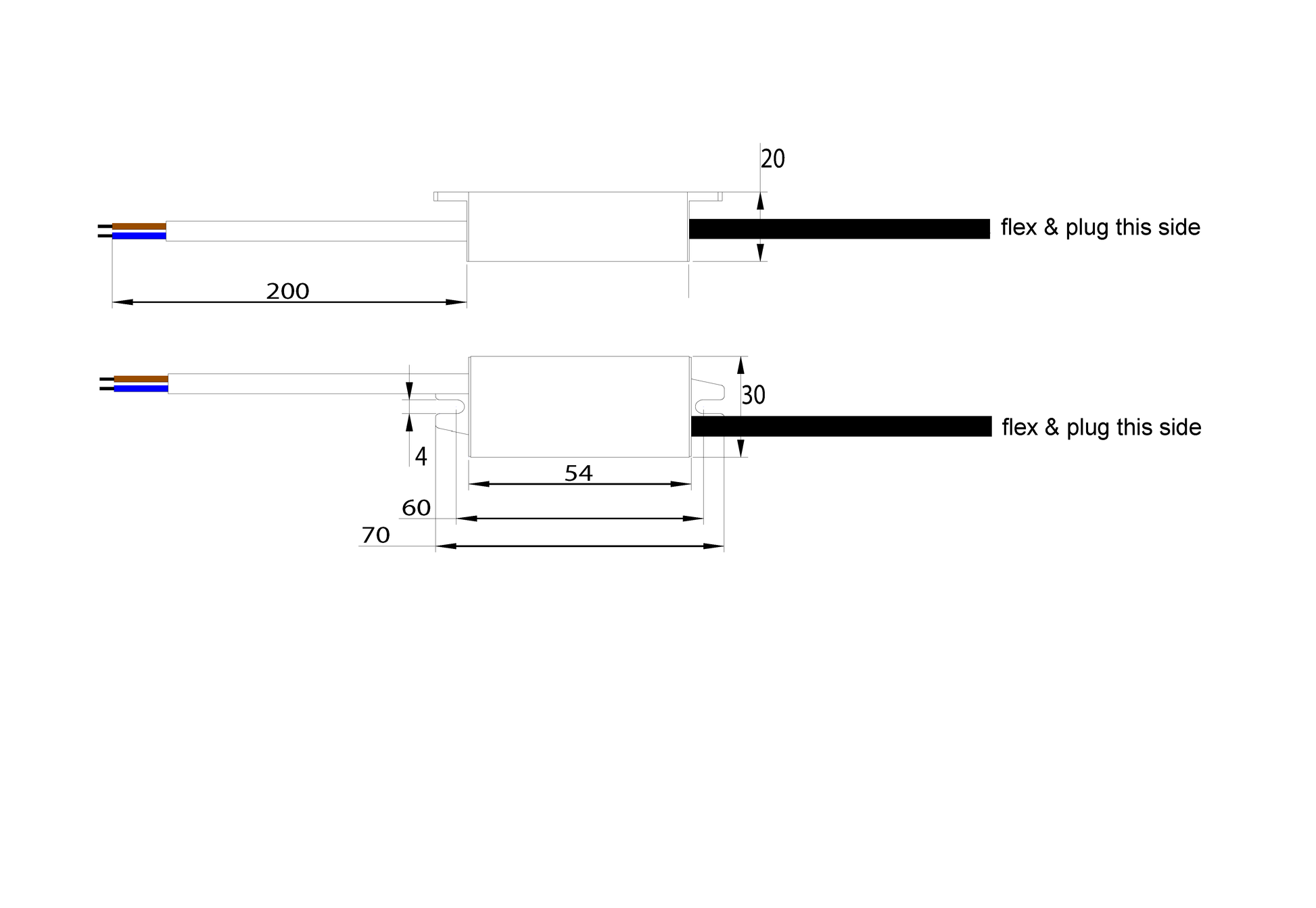 - Dimensions: Width 30 mm, Height 20 mm, Length 70 mm