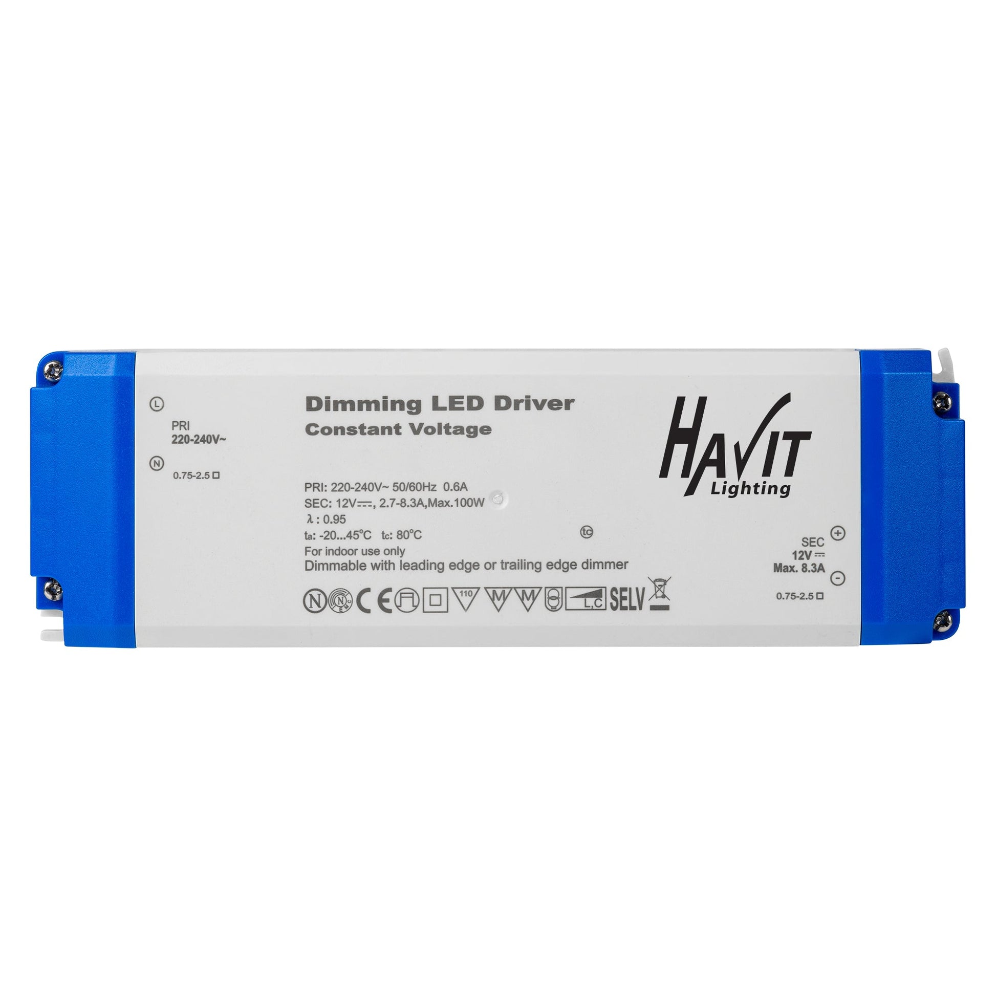 Illuminate your living space with the Havit Lighting Indoor LED Driver, designed for optimal ambiance and flexibility. This Triac Dimmable driver comes with a convenient Flex and Plug for easy installation, offering a dimming range from 5% to 100%. With a sturdy plastic construction in a sleek White/Blue finish, this driver seamlessly integrates into your indoor environment. Operating at an input voltage of 240V and delivering an output voltage of 12V DC, it ensures efficient performance while boasting a maximum load capacity of 80W and a minimum load of 10W. The Havit Lighting Indoor LED Driver is not just a practical addition but a stylish one too, measuring 67mm in width, 34mm in height, and 210mm in length. Embrace versatility and reliability with the Havit Lighting Indoor LED Driver SKU: HV9668-12V100W. This dimmable driver by a trusted brand offers a 3-year replacement warranty, providing peace of mind for your lighting needs. Ideal for indoor use with an IP Rating of IP20, this driver caters to various lighting setups while ensuring easy compatibility with your existing fixtures. Whether you're creating a cozy atmosphere or enhancing task lighting, this LED driver's efficient performance and user-friendly design make it a standout choice. Let the Havit Lighting Indoor LED Driver elevate your lighting experience with its seamless integration, reliable operation, and modern aesthetic appeal.Specifications