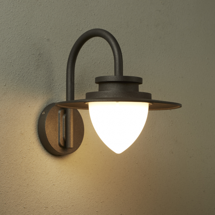 Enhance the ambiance of your outdoor space with the Hythe Wall Lantern in Graphite. This traditional-style wall light exudes quality craftsmanship, constructed from die-cast aluminium with an opal polycarbonate diffuser. Emitting a warm 3000K glow, this LED light fixture delivers a luminous output of 545 lumens, ideal for creating a welcoming atmosphere in your garden or patio. With an IP54 rating, this outdoor light is designed to withstand the elements, making it a durable and stylish choice for your home exterior.Specifications