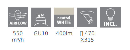 Enhance your bathroom experience with the sophisticated Black Inferno Bathroom 3-in-1 exhaust fan by Eglo Lighting. This versatile unit boasts a powerful extraction rate of 550 m3/hr, ensuring efficient ventilation for medium to large bathrooms. Equipped with a quiet ball bearing motor, a 1000W halogen heat globe, and four replaceable GU10 globes, the Inferno is the epitome of both style and functionality. Choose from two elegant colors to complement your decor, while its IP24 rating makes it ideal for installation over showers or baths. Included in the package is everything you need for a seamless setup: 3 meters of ducting, an external grille, and a convenient 3 gang wall control offering options for light, fan, and heat settings. With a sleek facia size of 500mm x 350mm and a manageable depth of 213mm, this exhaust fan fits effortlessly into your bathroom space. Enjoy peace of mind with Eglo Lighting's 3 Year In-Home Warranty, ensuring that any issues within the warranty period are promptly addressed by their dedicated team. Elevate your bathroom's ambiance and functionality with the Inferno - a blend of modern design and top-tier performance.Specifications