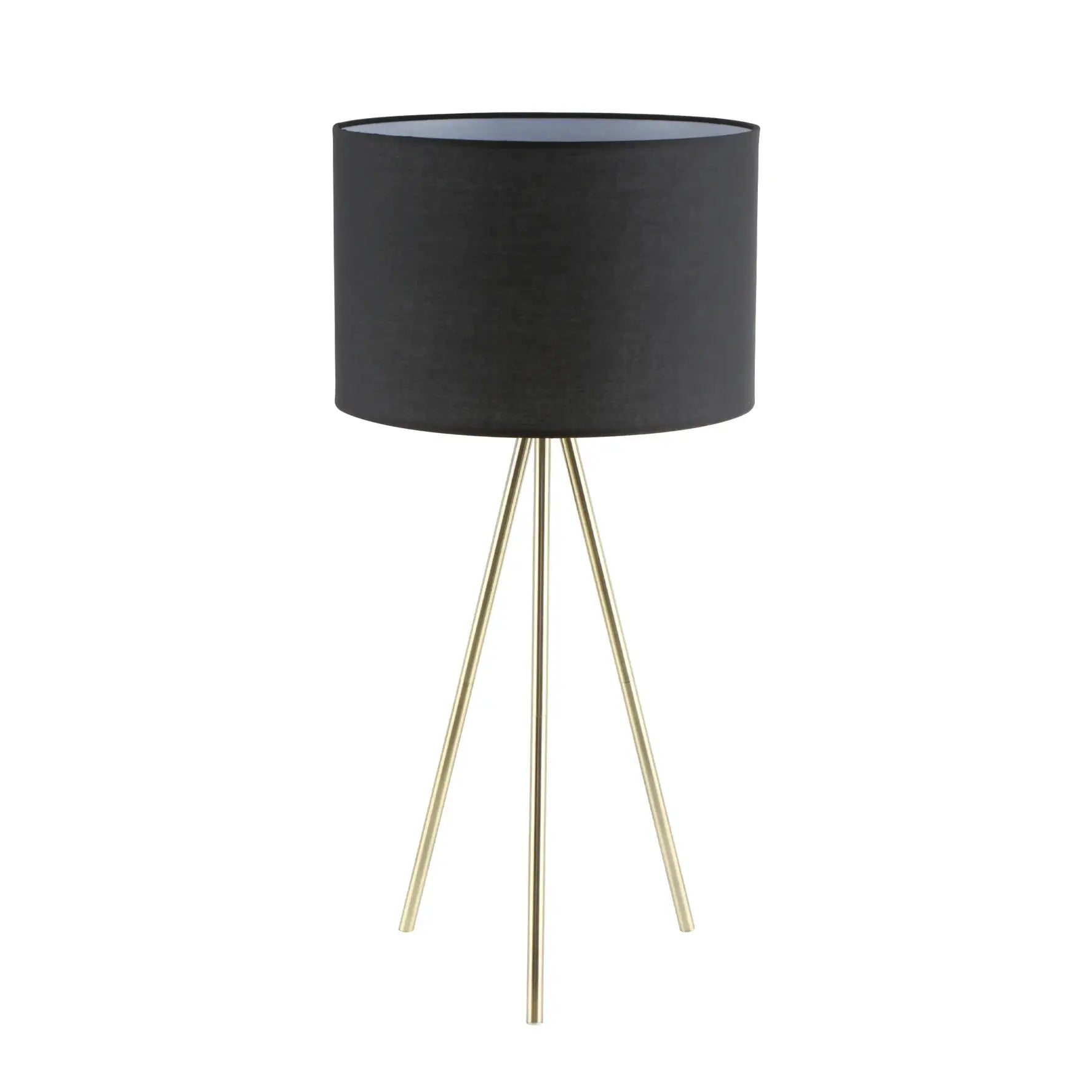 TABLE ES 60W Drum BLK Shade w/Ant Brass Tripod OD 290mm (Shade) H590mm Inline On/Off Switch WTY 1YR