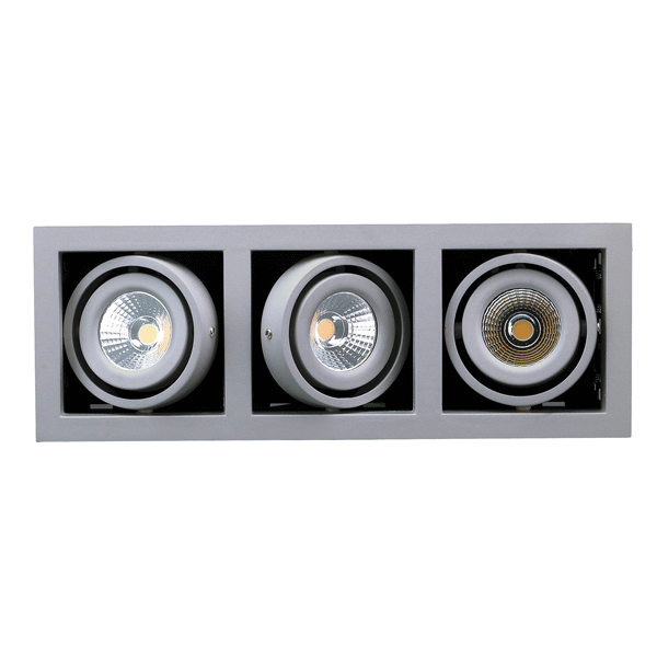 Illuminate your space with the LED Triple Frame Light, model LDL-GIM3-SI. Featuring a sleek silver/grey design, this versatile fixture offers precise control over light direction, making it perfect for wall washing, accent, or display lighting. With a double insulated, full metal case for efficient heat dissipation, this indoor LED light boasts a power supply of 220-240V and a total of 1620 lumens at 3000K color temperature. Install it easily through ceiling or recessed mounting and enjoy its dimmable functionality, CRI of 80, and a 30° beam angle for customizable lighting experiences.Specifications