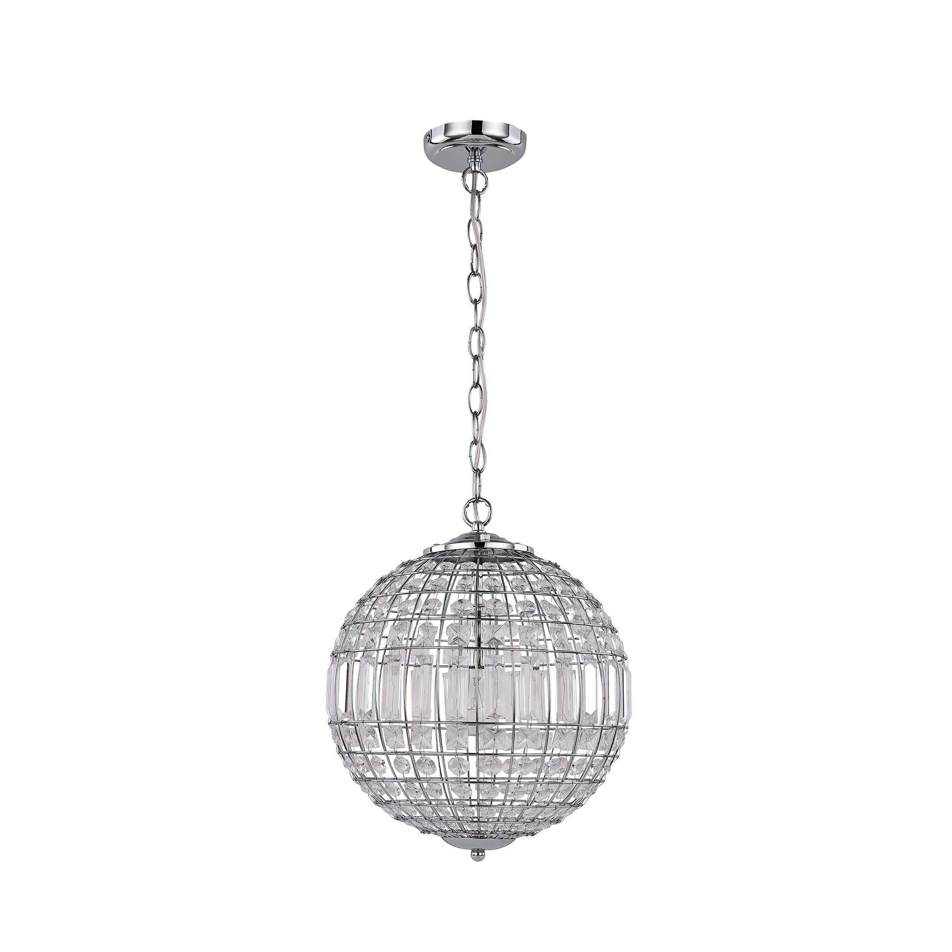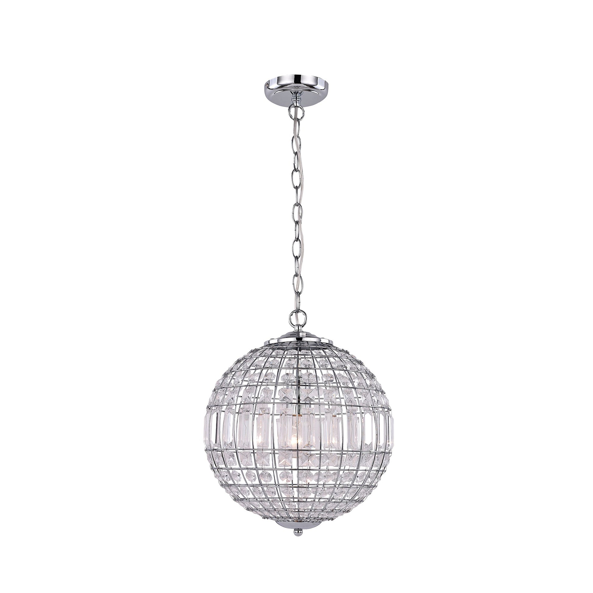 Elevate your living space with the Lode Pendant Light, model number LL002PL114S. This exquisite lighting fixture seamlessly blends modern aesthetics with classic charm. Crafted with a mix of matte steel and chandelier-style glass, the globe design of the Lode Pendant Light exudes sophistication. The intricate chamfered glass pieces are suspended within a sturdy metal armature, creating a captivating play of crystal white light that illuminates any room with elegance. Measuring 340mm x 340mm and boasting a circumference of 440x440, this pendant light is a versatile addition to interior spaces seeking a touch of timeless allure. In a captivating Matt Chrome + Clear color scheme, the Lode Pendant Light is a harmonious fusion of Metal and Glass materials. With a product dimension of H 1950mm x W 340mm x D 340mm and a weight of 2.5kg, this lighting fixture is a lightweight yet impactful accent for your home. Designed to accommodate a single E27 bulb with a maximum wattage of 60W (bulb not included), this pendant light operates at a voltage range of 220-240V and boasts an IP20 rating for safe use. Suspended elegantly with a 150cm chain, the Lode Pendant Light is a statement piece that complements classic interior styles without overwhelming the space.Specifications