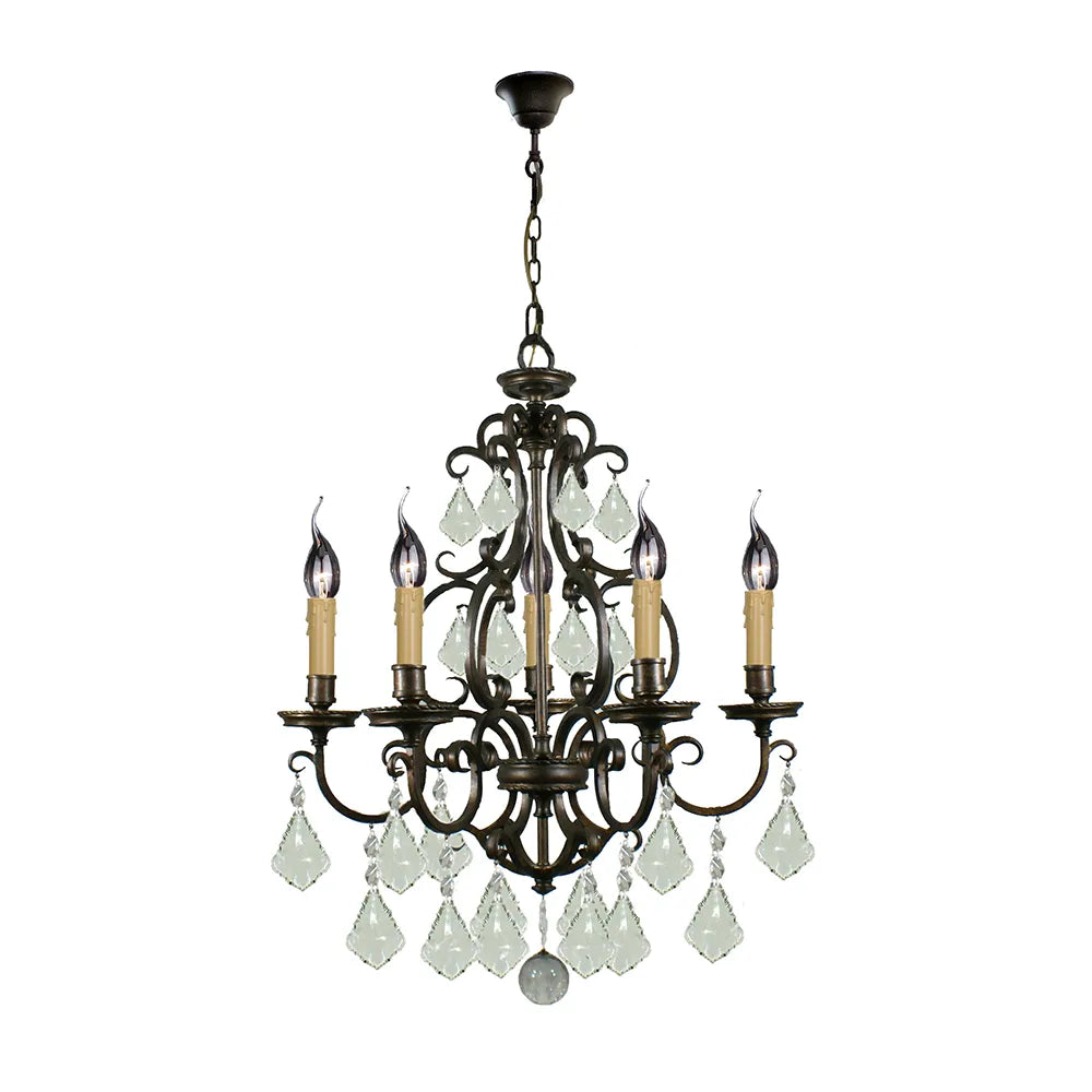 Elegance meets sophistication in the Louis 15th Crystal Chandelier from Lighting Inspirations. Crafted with a bronze metal frame and high-quality crystal accents, this exquisite chandelier exudes timeless charm and opulence. Standing at 740mm in height and 630mm in width, this masterpiece is designed to illuminate and adorn indoor spaces with its radiant glow. The Louis 15th Chandelier features 5 E14/SES lamp holders, offering a luxurious lighting solution for any room. Enhance your living space with the grandeur of the Louis 15th Crystal Chandelier. With a 1-year replacement warranty, this stunning piece is both a statement of style and a beacon of light. Whether suspended over a dining table or in a grand foyer, the chandelier's intricate design and meticulous craftsmanship are sure to captivate all who behold it. Remember, for safe installation and lasting beauty, always seek the expertise of a licensed electrician when setting up this magnificent lighting fixture.Specifications