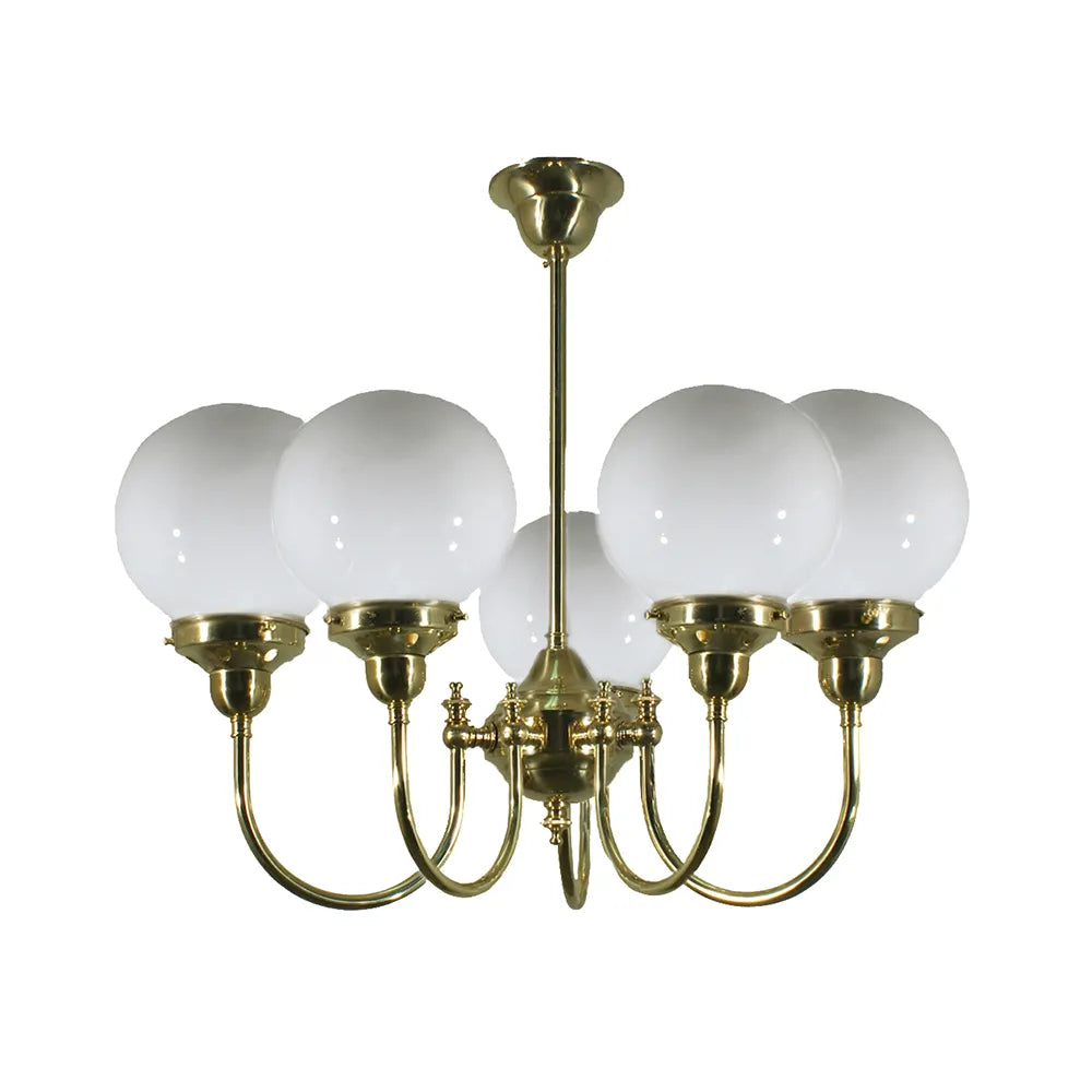 Elevate your living space with the exquisite Luke Collection by Lighting Inspirations. Crafted with precision and designed for elegance, this stunning chandelier boasts a sophisticated brass finish that exudes timeless charm. The Sphere 6" Opal Gloss Glass shade adds a touch of refinement, creating a warm and inviting ambiance in any indoor setting. With an impressive width of 560 mm and a height of 660 mm, this fixture is sure to make a statement in your home. Immerse yourself in the beauty of the Luke Collection's 5-lamp design, perfect for illuminating your space with a soft, ambient glow. The steel construction ensures durability, while the 1/2" Rod measuring 500 mm adds a touch of modern flair. Operating at 240V with a B22/BC Globe Base, this chandelier does not come with globes included, allowing you the freedom to customize your lighting experience. Backed by a 1-year replacement warranty, this exquisite piece is a must-have for those seeking both style and functionality. Remember, professional installation by a licensed electrician is required for safe and optimal use.Specifications