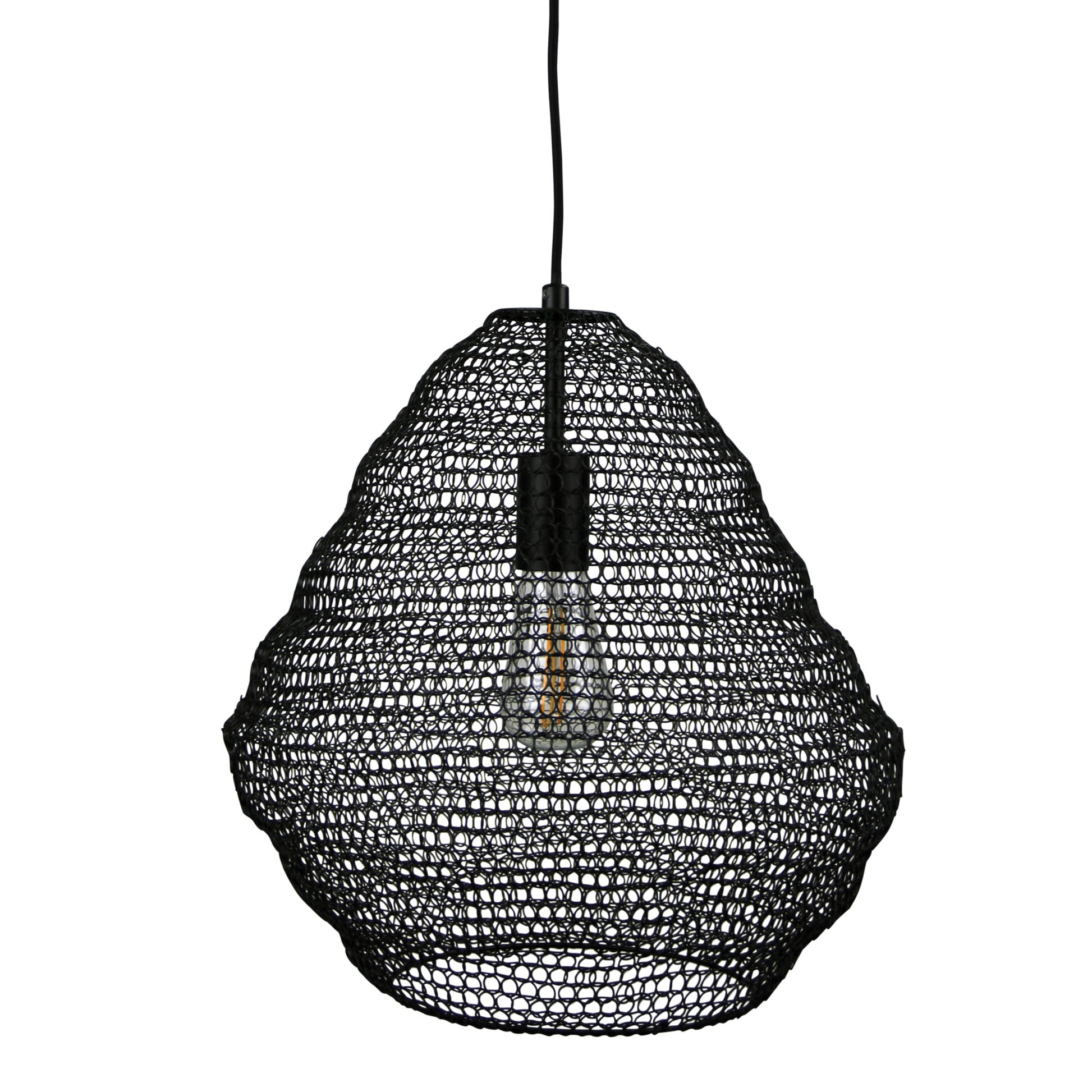 Embrace a touch of earthy elegance with the Mudag Small pendant light from Meshique Mesh. Crafted in sleek black metal with a matte finish, this pendant exudes modern charm. Ideal for indoor use, this light fixture features a single E27 bulb socket with a maximum wattage of 40W, offering a warm glow perfect for illuminating a cozy corner or a stylishly set dining table. Enhance your living space with the Mudag's minimalist yet striking design, whether hung solo or clustered for a more dramatic effect.Specifications