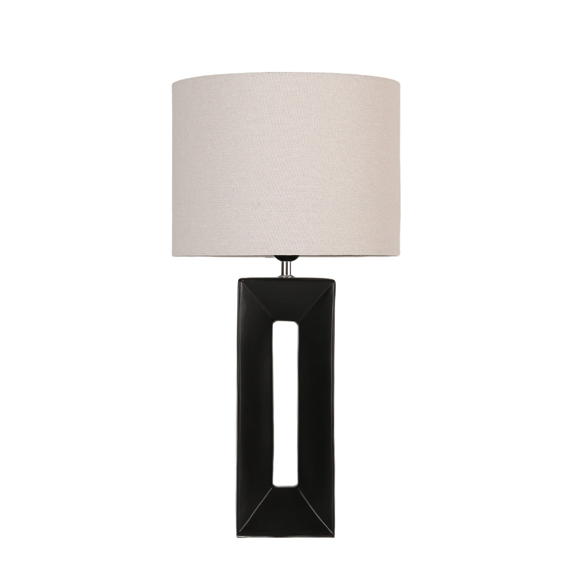 Elevate your living space with the Niamh Ceramic Table Lamp, an exquisite addition that seamlessly blends style and function. The lamp features a captivating matt black ceramic base complemented by a chic linen fabric shade, creating a striking visual contrast. With a single E27 bulb base and a maximum wattage of 60W, this lamp exudes modern elegance while providing ample illumination. Perfect for those seeking a trendy yet sophisticated lighting solution, this lamp is sure to enhance the ambiance of any room.Specifications