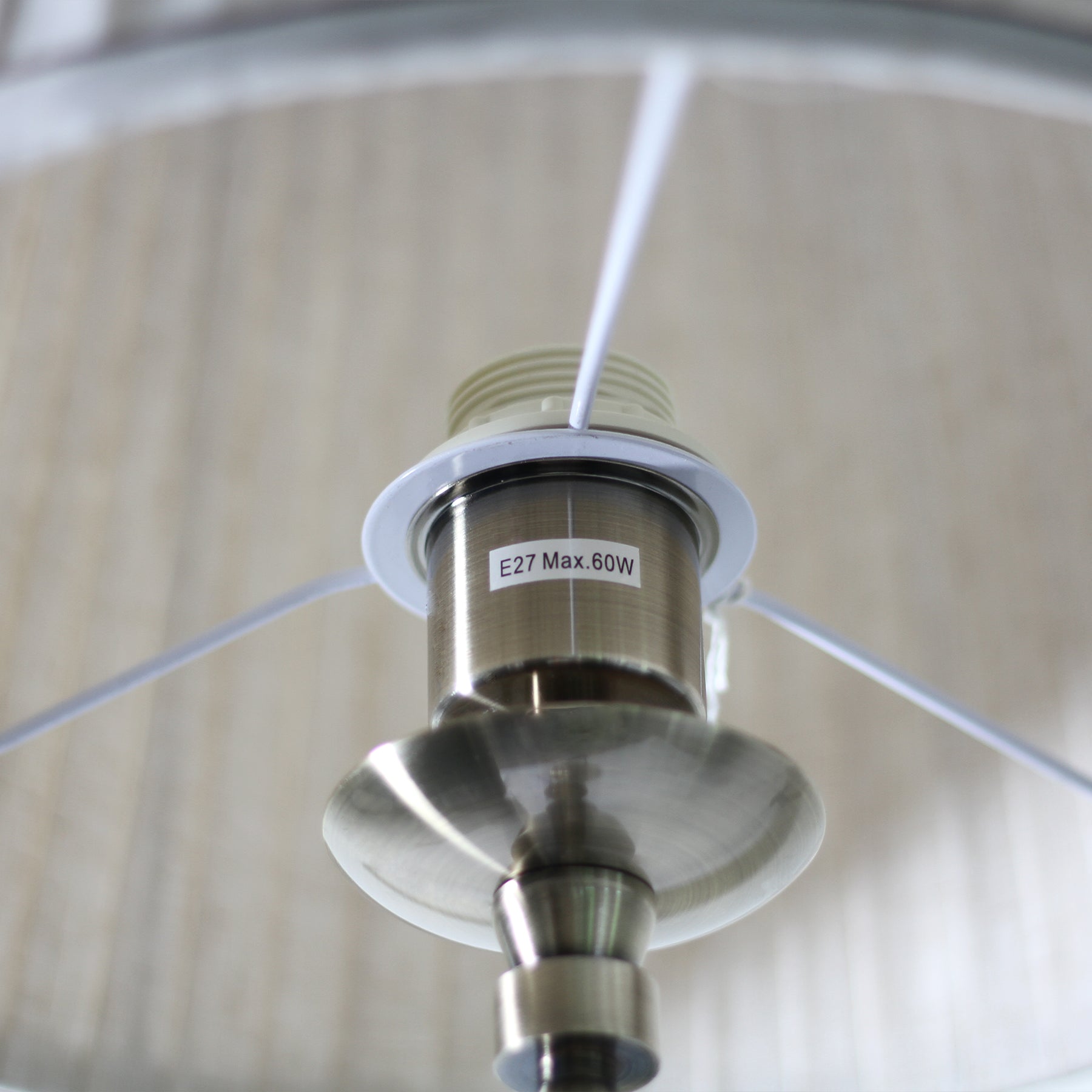 The Nicollete Lamp, Model No. LL-27-0135, exudes timeless elegance with a touch of innovation. Featuring a stunning brass stand and a rippled beige lamp shade, this classic lamp effortlessly combines traditional charm with a modern twist. Standing at 156cm tall with a diameter of 40cm, it adds character to any space be it on a desk, table, nightstand, or in the corner of a living room, dining area, or bedroom. The warm glow it emits when illuminated creates an inviting ambiance, making it a perfect fit for sophisticated interior decors. Crafted with a metal base and a fabric shade in Brass Base and Cream colors, the Nicollete Lamp is designed for E27, 1x60W Max bulbs (Not Included). Its On/Off In-line Switch ensures convenient operation, while the lamp's IP20 rating makes it suitable for indoor installation only. Easy to maintain, simply wipe clean with a dry cloth to keep it looking flawless. Elevate your living space with the Nicollete Lamp, a versatile lighting piece that combines style and functionality effortlessly.Specifications