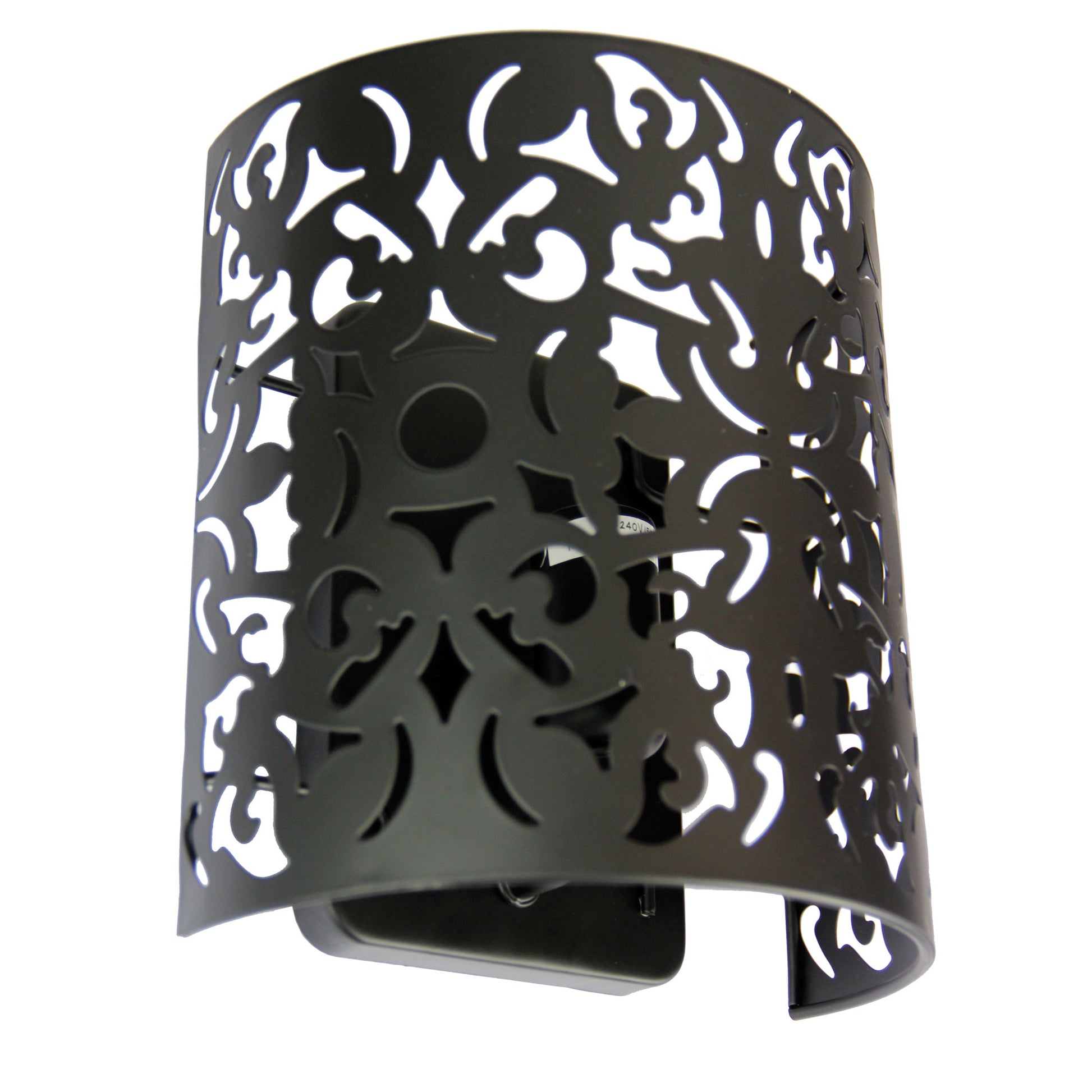 Enhance your living space with the sophisticated Vicky Wall light from Oriel Lighting. This laser-cut metal wall-mounted light in BLACK features a painted metal shade with an intricate cutout pattern, providing a stunning ambiance when illuminated. Designed to accommodate one E27 bulb with a maximum wattage of 42W (bulb not included), this elegant fixture is perfect for adding a touch of modern charm to any room. Pair it with the Vicky ceiling lights to create a cohesive lighting scheme. With an overall height of 20cm, width of 18cm, and depth of 13cm, the Vicky Wall light is a versatile and stylish lighting solution that will elevate your home decor.Specifications