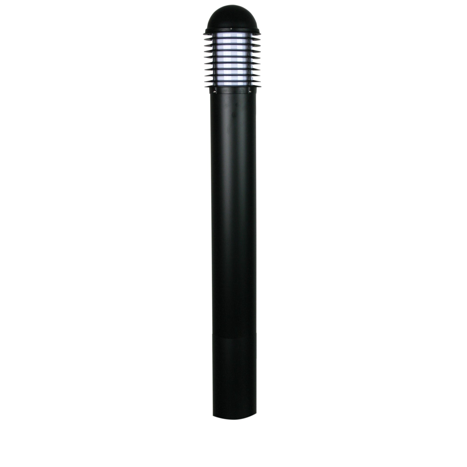 Enhance the ambiance of your outdoor space with the Velika In-Ground bollard by Oriel Lighting. Crafted from durable ALUMINIUM, this sleek BLACK fixture is designed for in-ground installation, featuring a di-cast aluminium exterior with a louvered top section. With an IP44 rating, the Velika is ideal for use with an E27 bulb of up to 60W, offering a warm illumination perfect for pathways or garden areas. The opal polycarbonate diffuser complements the overall design, while the 240V voltage ensures reliable performance. Please note that this bollard does not come with a bulb included and should be installed by a licensed electrician. Enjoy a 12 Month Replacement Guarantee with this stylish and functional outdoor lighting solution.Specifications