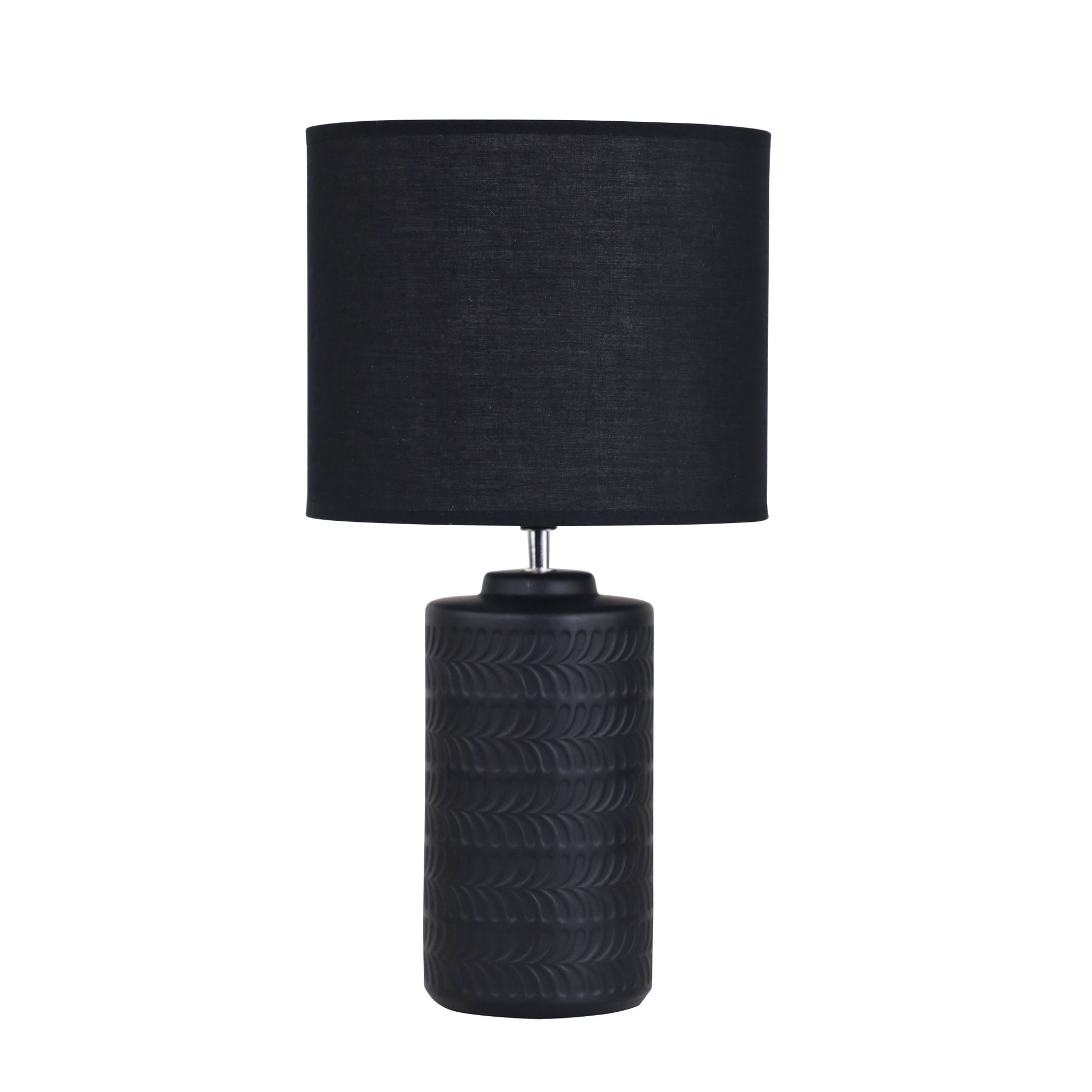 Elevate your living space with the Oriel Lighting Jenny Ceramic Table Lamp in sophisticated Black. This sleek lamp boasts a ribbed ceramic base with a matte finish, complemented by a poly-cotton laminated shade. Standing tall at 46 centimeters, this elegant lamp is perfect for bedside use, offering a warm glow with its E27 bulb socket that supports up to 60W. The lamp features a convenient on/off switch on the black PVC cord and comes with a 12 Month Replacement Guarantee, ensuring both style and reliability in one chic package.Specifications
