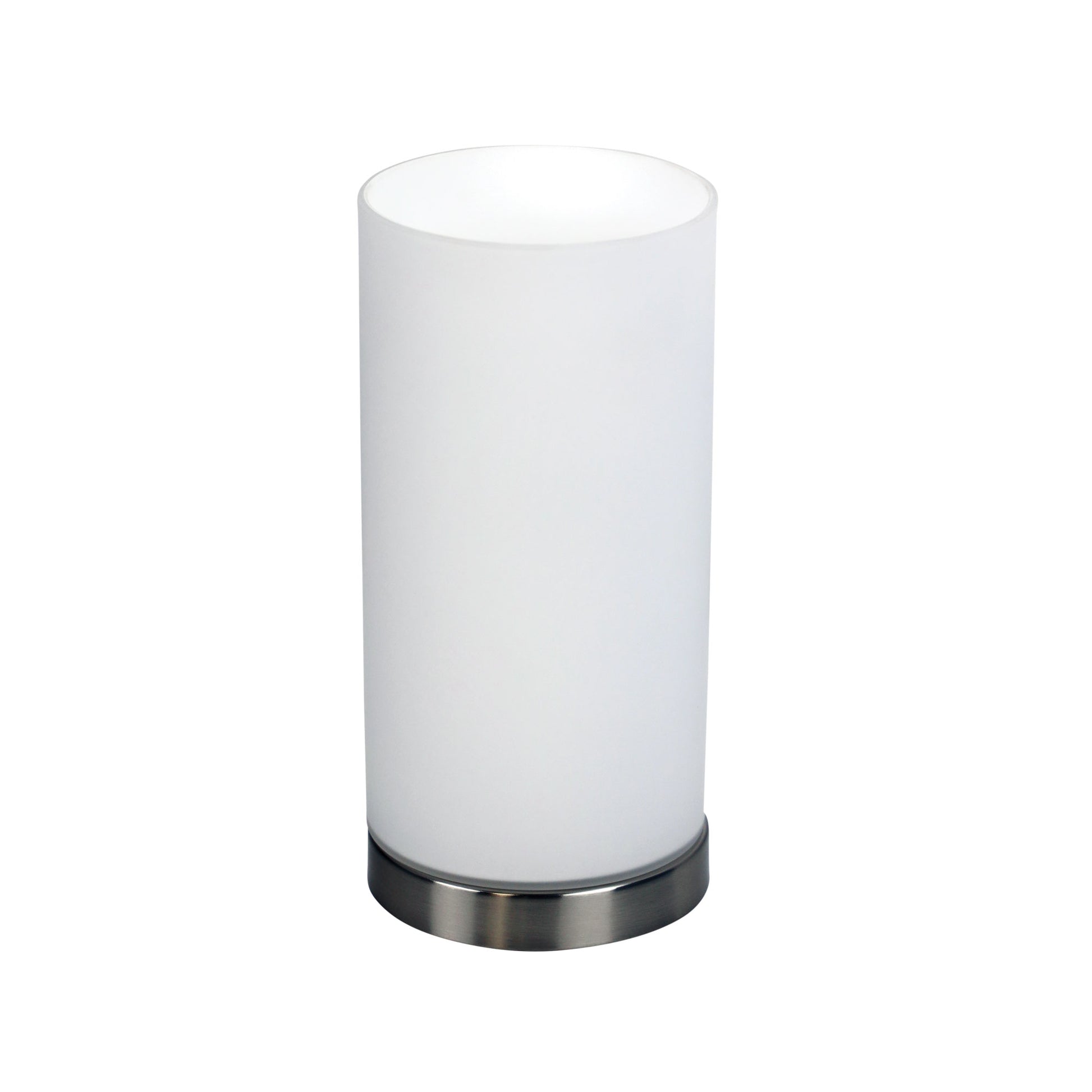 Enhance your bedroom ambiance with the sleek and modern PABLO Touch lamp from Oriel Lighting. Finished in elegant Brushed Chrome and featuring a soft Matt Opal Glass shade, this lamp exudes sophistication. The simple ON-OFF touch mechanism adds convenience, making it an ideal bedside companion. With a recommended A-LED-25104440 globe and a 12 Month Replacement Guarantee, this lamp stands out as a stylish and practical lighting solution for your home.Specifications