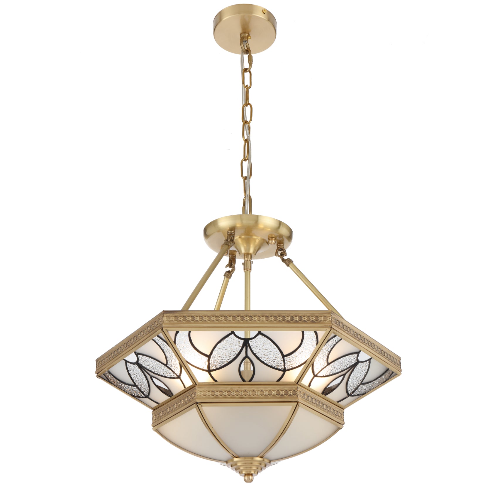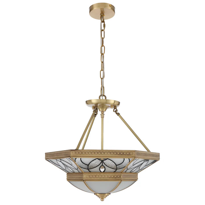 Elevate your indoor lighting with the Orista Pendant CTC from the sophisticated Orista collection. This Artisan Brass Pendant Light features a mesmerizing dual-tiered design, blending leaded glass elegance with acid-frost glass sophistication. Crafted meticulously in a solid brass frame, this pendant fuses artistry with precision. Emitting ambient light and enhancing aesthetic appeal, this fixture, with dimensions of 50.00 cm in width, 20.80 cm in height, and weighing 3.60 Kg, showcases a harmonious marriage of form and function, making it a striking addition to your living spaces.Specifications