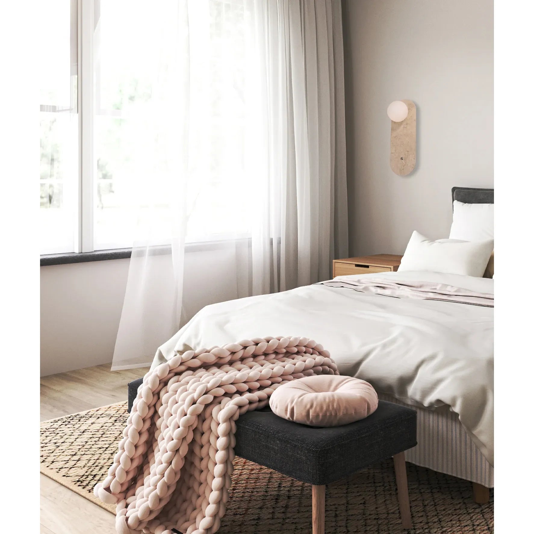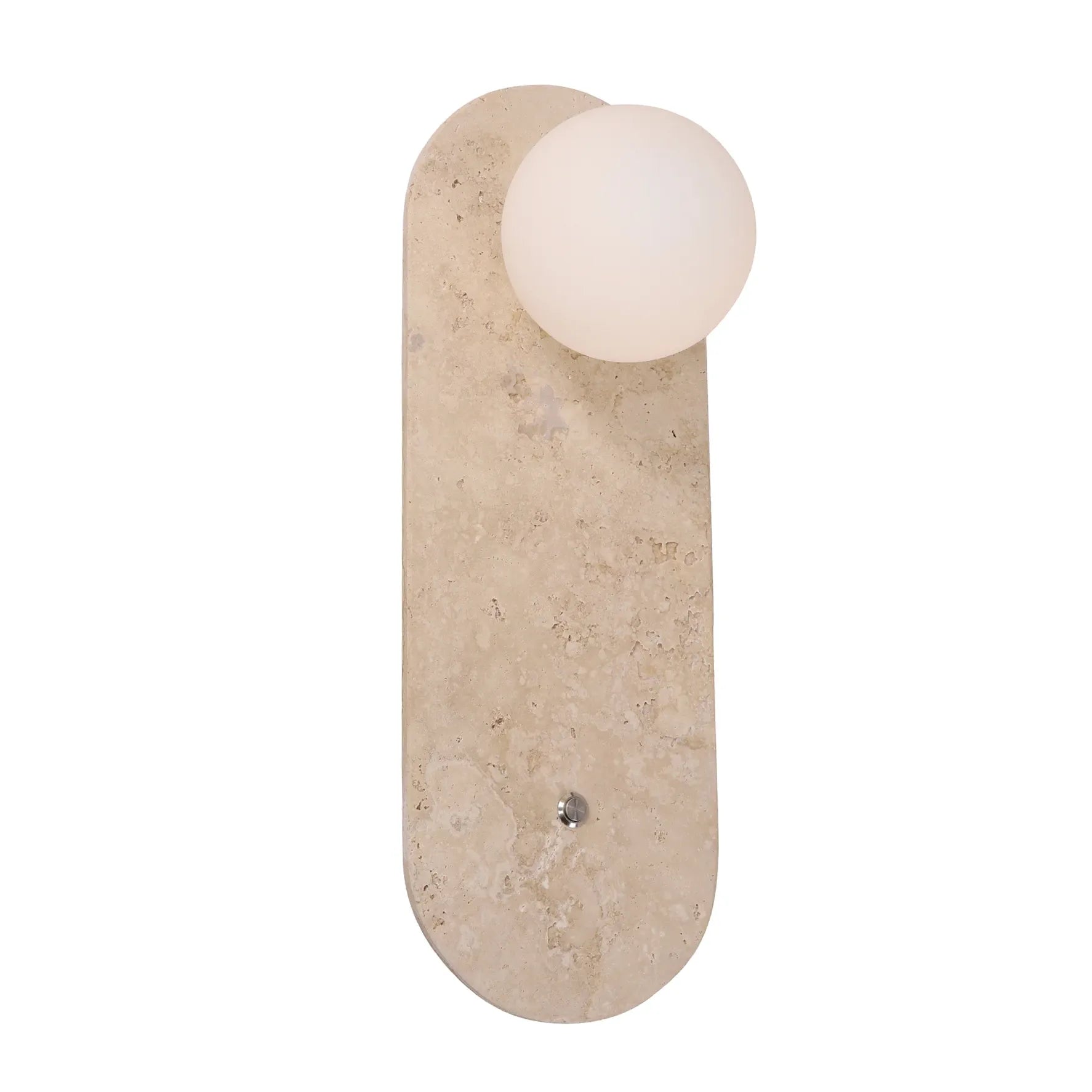 Interior Oblong Travertine Base with Beige Finish & Round Opal Diffuser Wall Light