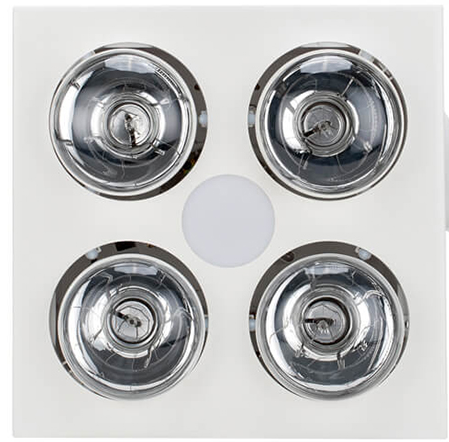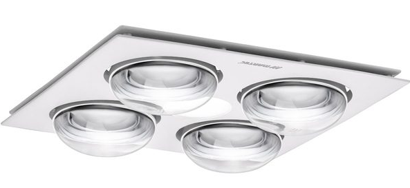 - 3 in 1 exhaust fan with 4 x infrared heat lamps and Tri Colour 10W integrated LED light