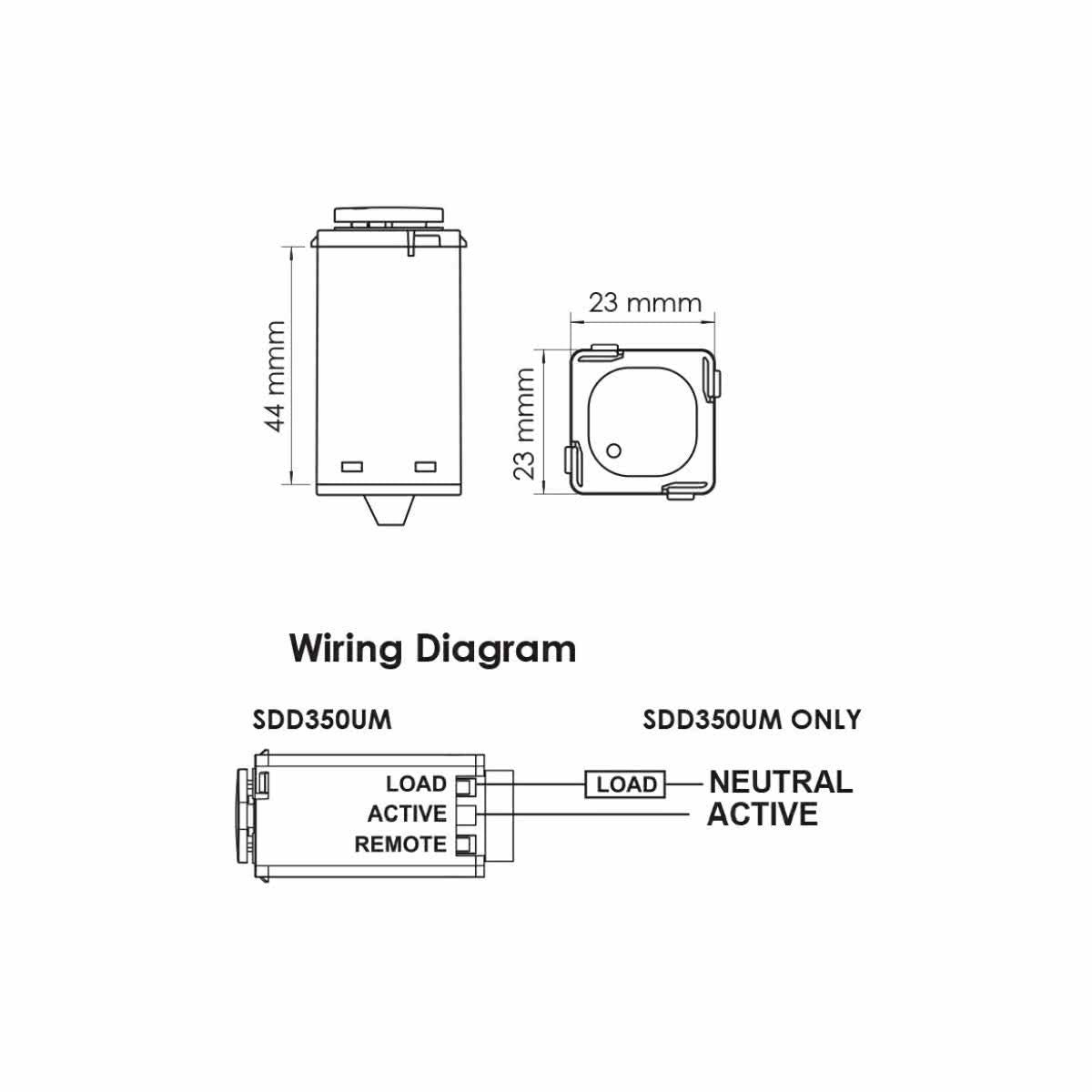 Enhance your living or work space with the MASTER Universal Digital Dimmer by SAL. Tailored for both residential and commercial use, this smart lighting control system offers a seamless blend of functionality and style. Whether for ambiance adjustment or energy efficiency, this dimmer provides push-button control for both trailing and leading edge digital dimming, indicated by a vibrant GREEN LED for TE mode and a striking RED for LE mode. With the ability to select color temperatures when paired with SAL S9841 or S9842 downlights, this dimmer ensures a customizable lighting experience that suits your preferences. The technical finesse of the MASTER Universal Digital Dimmer shines through in its versatile design. Operating at 240V with a wattage capacity of 300W, this dimmer is equipped to handle various lighting demands with finesse. Its compact dimensions of 23mm in width, 23mm in height, and 44mm in length make it a sleek addition to any setting. Compliant with AS/NZS60669.2.1 standards and supporting ceiling sweep and exhaust fan loads under 60 watts, this digital dimmer guarantees safety and reliability. Install with confidence, backed by a 1-year replacement warranty, ensuring peace of mind with every use.Specifications