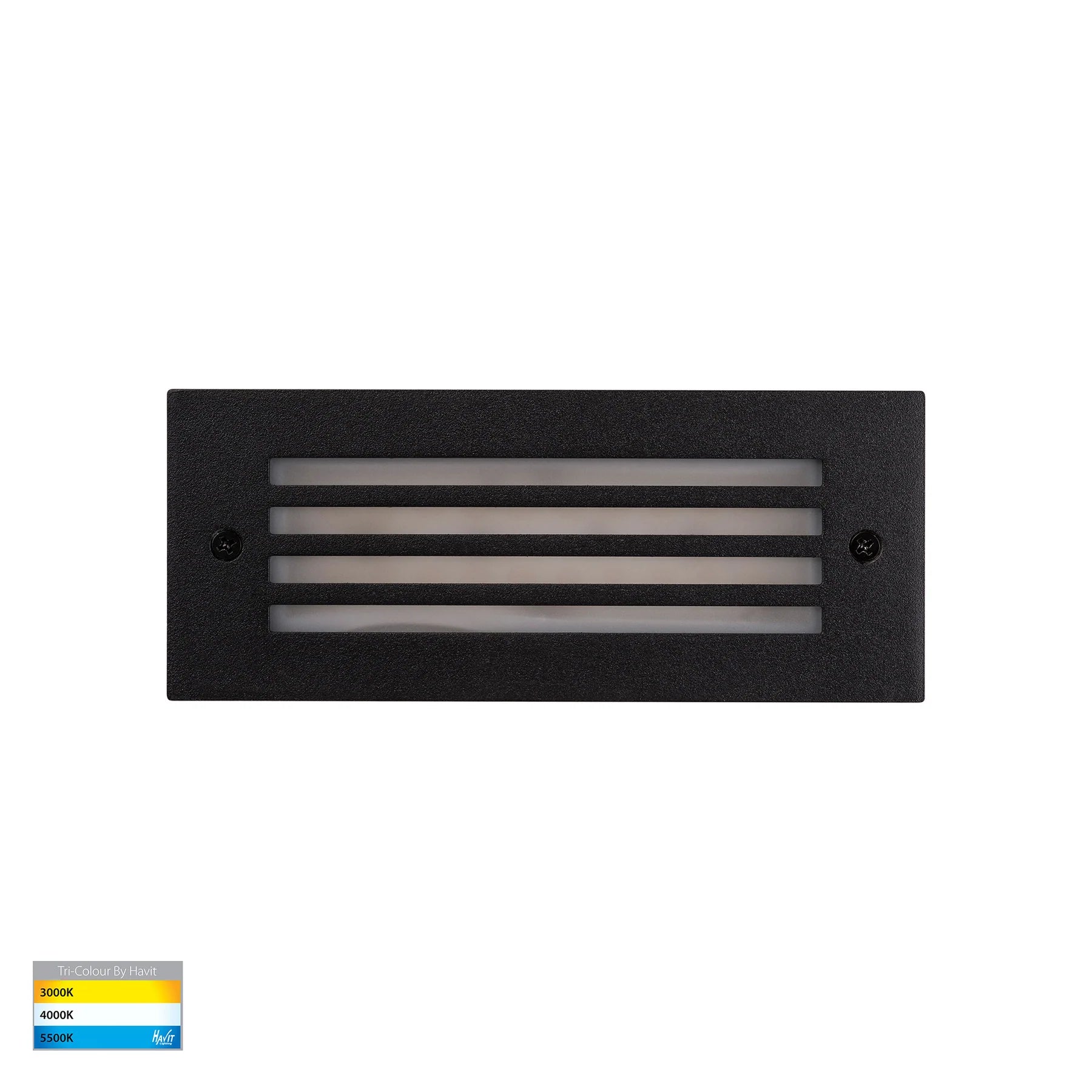 Presenting the Bata Black 6W LED Brick Light, a versatile and stylish lighting solution for your outdoor spaces. This recessed brick light features a sleek stainless steel poly powder-coated black face and a durable powder-coated die-cast aluminum body, ensuring both aesthetic appeal and longevity. With a frosted tempered glass design and the flexibility of tri-color lighting options (3000K, 4000K, 5500K), this IP54-rated light is suitable for wall installations, providing a blend of functionality and elegance. Choose between a 240V AC or 12V DC input voltage, with a built-in 6W LED for energy efficiency. Backed by a 3-year replacement warranty (for items ordered after 01/01/22), this light requires a suitable 12V DC LED driver for optimal performance.Specifications