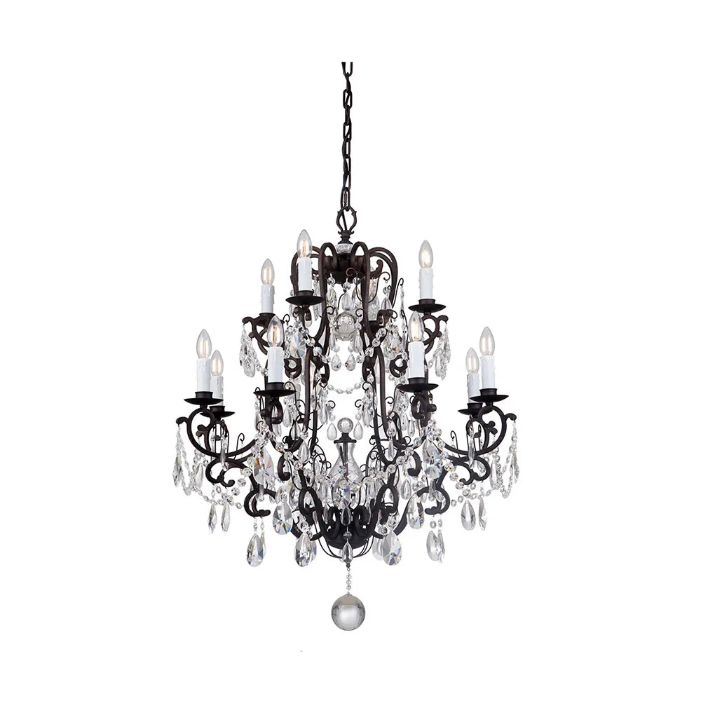 A beautifully constructed chandelier with bronze-finish iron and first grade K9 crystals