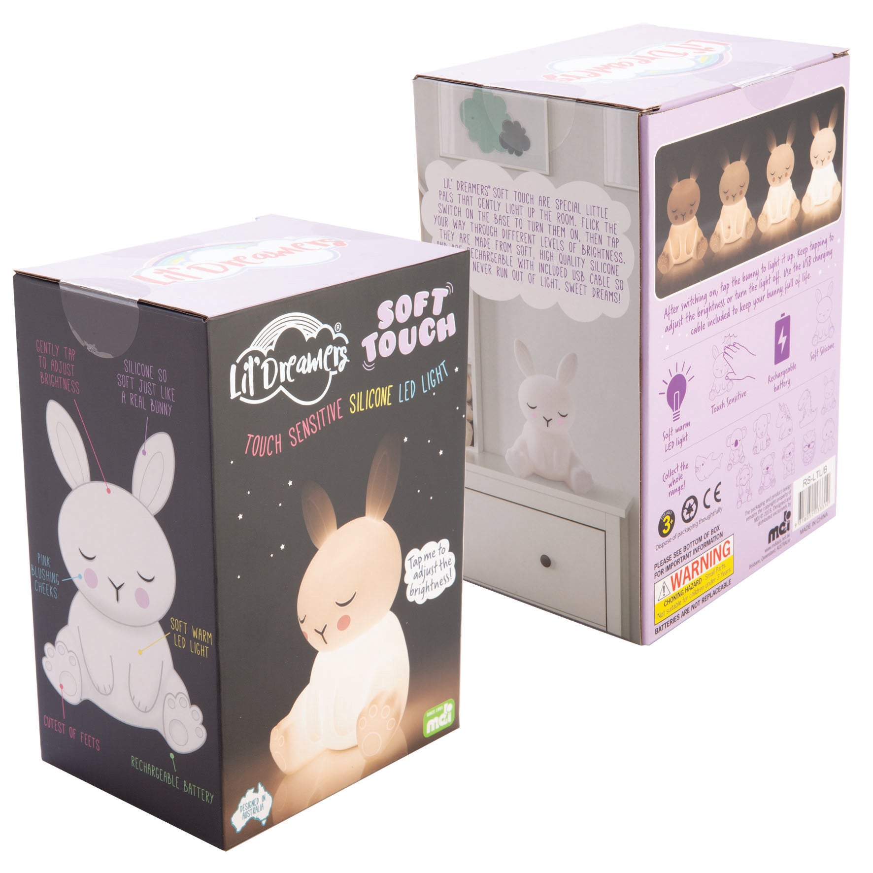 Step into a world of whimsy and charm with our Serene Bunny LED Touch Lamp. This delightful creation brings a touch of magic to any space, blending functionality with adorable design. With a soft silicone casing and an efficient LED bulb, this lamp emits a gentle glow that soothes the soul. Simply touch to activate and effortlessly adjust through six levels of brightness, making it a versatile companion for any mood or setting. Standing at 130mm in length, 95mm in width, and 175mm in height, this rechargeable lamp comes in a charming color box, perfect for gifting or personal use. The lithium battery, though not replaceable, ensures long-lasting illumination, while the LED bulb, also non-replaceable, guarantees a consistent and energy-efficient light source. Let this enchanting bunny light up your world with its warmth and whimsical appeal.Specifications