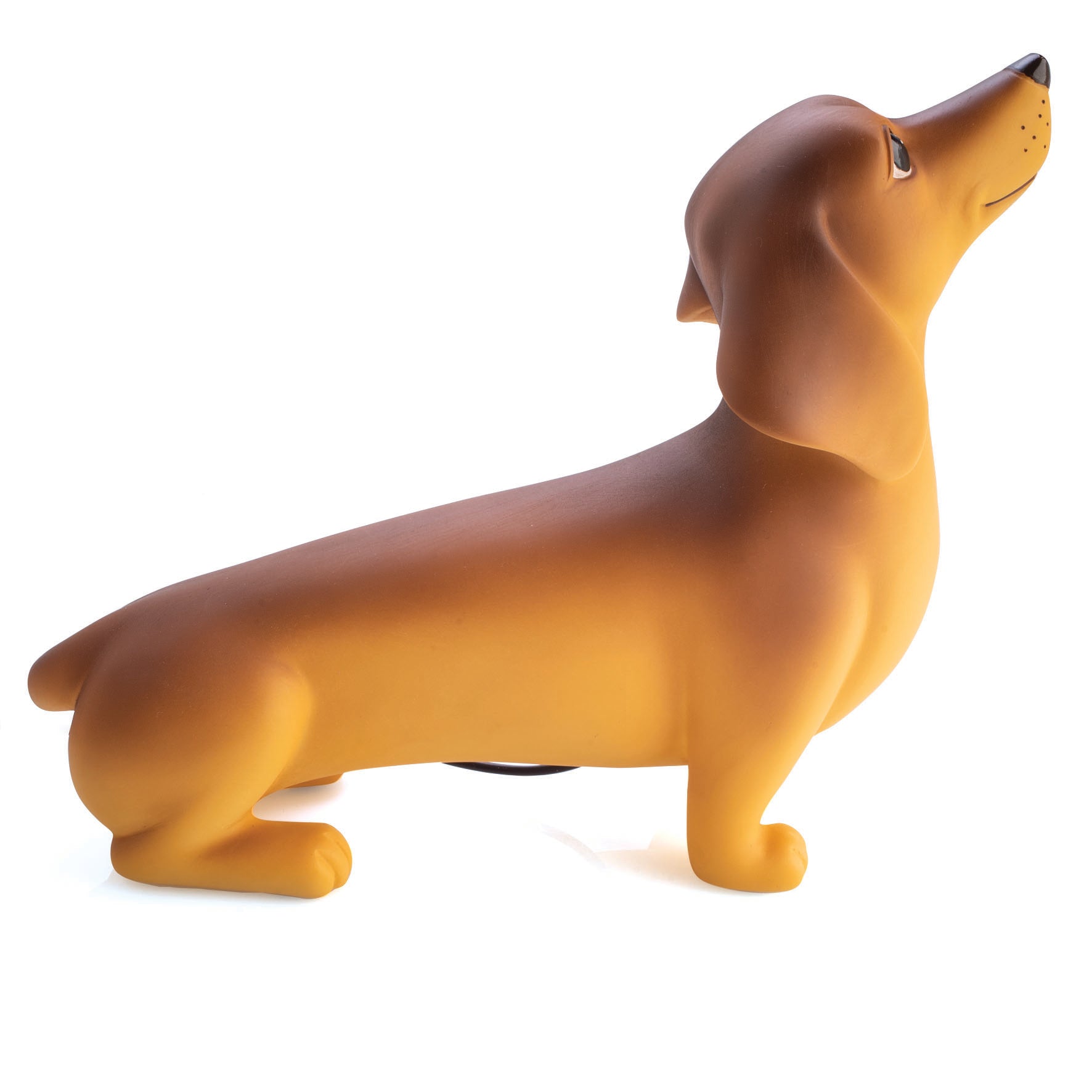 Meet the charming Table Lamp inspired by everyone's favorite lovably long Sausage Dog. This delightful lamp serves as a whimsical ornament by day, adding a touch of playfulness to any room. As night falls, watch it transform into a cozy beacon, lighting up the space with a warm glow. The low voltage LED ensures safety, making it perfect for children's rooms or any space that needs a touch of character. Crafted with dimensions of 240(L) x 90(W) x 200(H) mm, this Brown Box packaging with a colorful label houses a 2-meter cord for convenient placement. The LED BULB, though non-replaceable, promises long-lasting illumination, ensuring that this charming canine companion will brighten up your space for hours on end. Add a touch of whimsy and functionality to your living space with this endearing Sausage Dog Table Lamp!Specifications