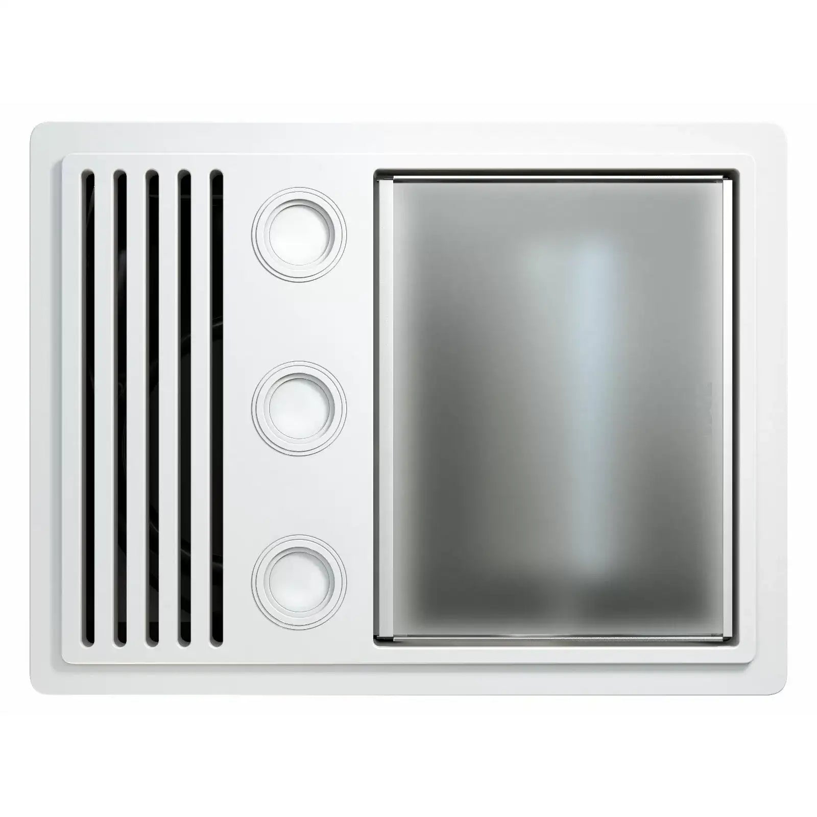 Experience luxury and innovation in your bathroom with the Tastic Ovation 3-in-1 Bathroom Heater, Exhaust Fan, and Light. Recently honored with the Australian Brand Awards 2021, this product boasts a powerful centrifugal exhaust fan providing an airflow extraction of up to 396m3/hr to swiftly eliminate steam. Designed with a contemporary white fascia and modern frosted 4000K cool white LED, along with an 800W heat lamp featuring Halo Heat™ Technology, the Tastic Ovation brings warmth and brightness to your space. Featuring a side ducted fan with inclined outlet, back draught stopper, and suitability for 5 Star Energy Rated Homes, this Australian-made product is ideal for medium-sized bathrooms, ensuring comfort and functionality with style.Specifications