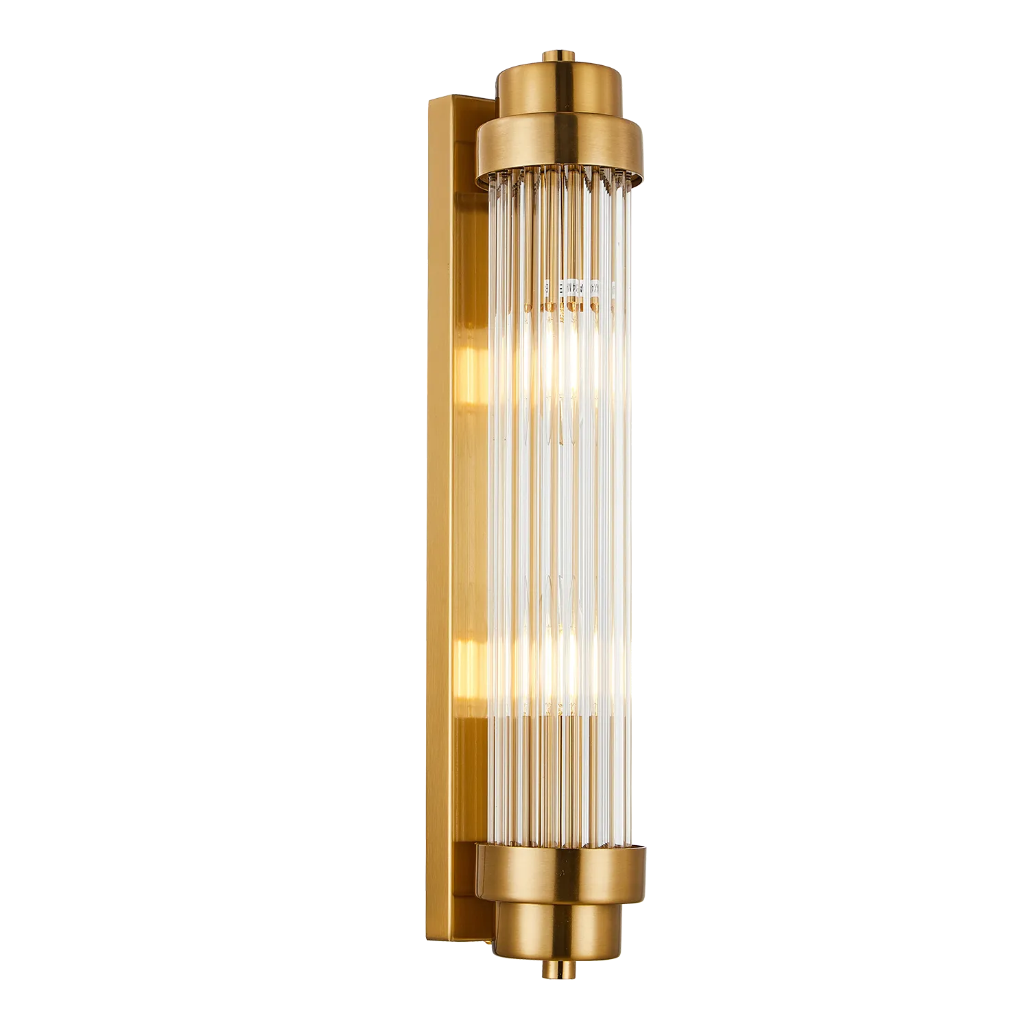 Enhance your indoor space with the VARILLAS Interior Up/Down Clear Glass Rod Wall Lights. Crafted with a blend of iron and elegant clear glass, this piece exudes sophistication in its Antique Brass finish. Featuring 18 exquisite glass rods measuring Ø7xH300mm, this wall light requires 2xE14 bulbs (Max.10W each) to illuminate your surroundings beautifully. With a sturdy build and a 1-year replacement warranty, this fixture adds a touch of class while providing reliable lighting. Experience a harmonious blend of style and functionality with the VARILLAS Wall Lights.Specifications