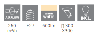 Enhance the ambiance of your cozy living spaces with the Eglo Vesuvius 2 ‘3 in 1’. Designed for compact areas like small bedrooms, ensuites, and laundry rooms, this versatile unit ensures a clear and moisture-free environment. Boasting a robust extraction rate of 260m³/hr, the Vesuvius 2 is a powerhouse in a sleek package. With an 8W Warm White LED light and two heat lamps, this multifunctional fixture brings warmth and brightness to your home while keeping it dry and snug. From its compact dimensions to the included features like a 1.5m ducting and a 3 Gang wall control for light, fan, and heat settings, the Vesuvius 2 stands out as a practical and stylish solution for your ventilation and lighting needs.Specifications