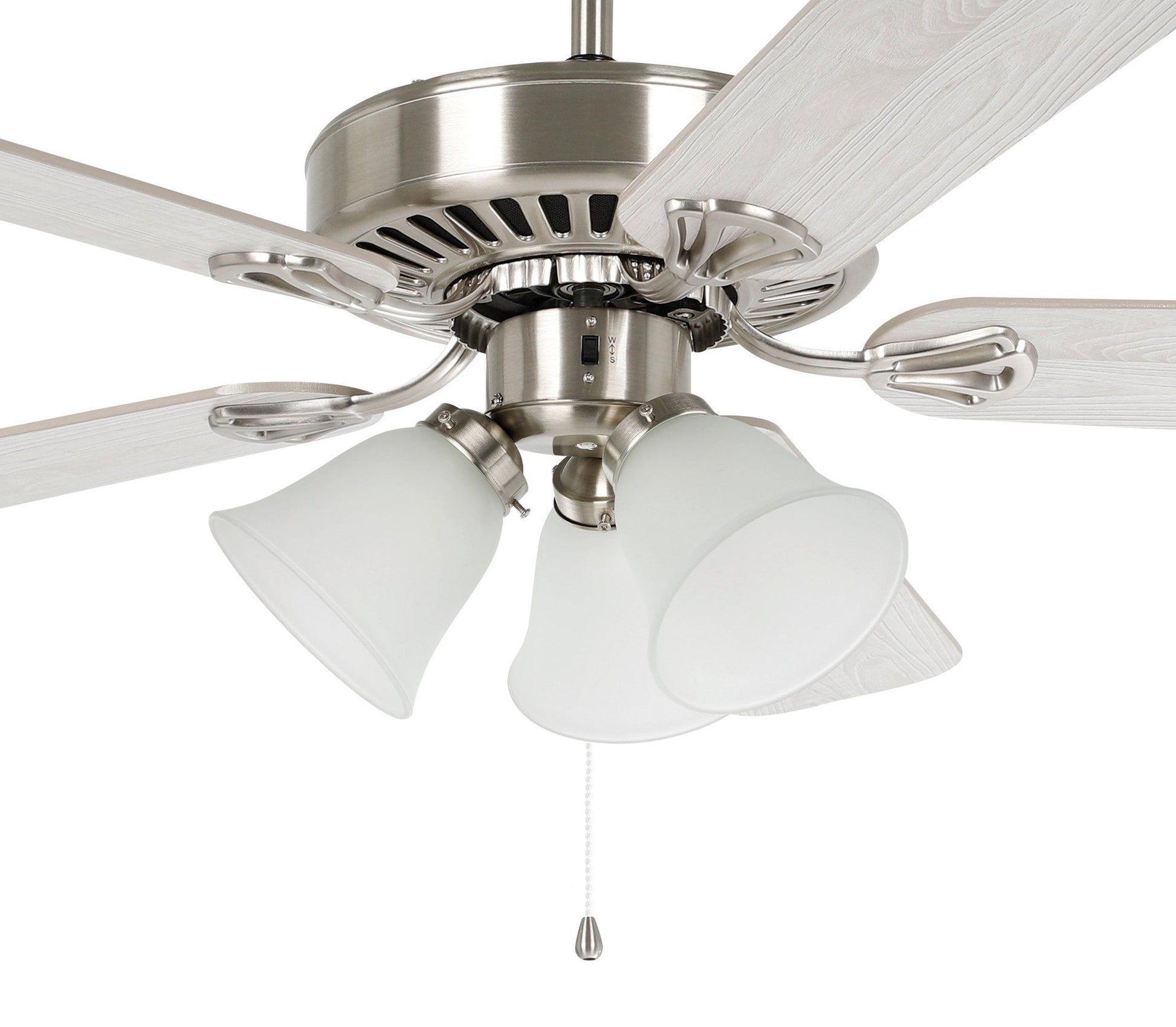 Enhance the ambiance of your space with the WAIKIKI Ceiling Fan E27 Light Accessory. Crafted with steel in a brushed brass finish, this accessory features a satin-finished glass shade and exclusive dimmable lighting. The product, with a five-year warranty, offers versatility with E27 globe sockets for easy bulb changes. Add a touch of elegance and functionality to your room with this customizable fan light, boasting dimensions of 374mm in width and diameter, 152mm in height, and a net weight of 1.48kg.Specifications