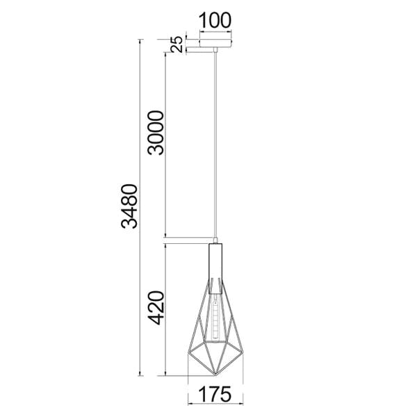 Shade Width: 175mm, Overall Height: 420mm + 3000mm cable