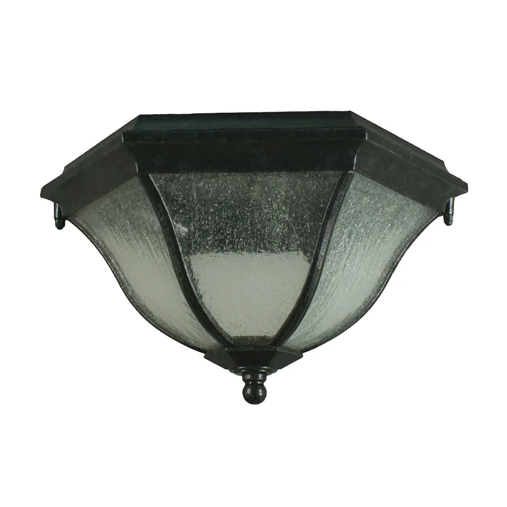 Enhance the charm of your home's exterior with the Antique Black Wickham Ripple Glass Under Eave Ceiling Light by Lode Lighting. Crafted with an antique bronze powder coated aluminium finish, this fixture exudes a delightful blend of traditional elegance and rustic allure. Ideal for illuminating patios, entranceways, and exterior walls under eaves, the Wickham features an E27 lamp holder and is compatible with LED globes, offering both style and energy efficiency. Standing at a height of 210mm and boasting a width of 350mm, the Wickham ceiling light in Antique Black is a versatile addition to your outdoor space. With an IP Rating of IP44 for indoor and outdoor under covered installation, this fixture is designed to withstand various weather conditions. Made from powder coated cast aluminium with ripple glass, this light fixture not only provides a warm glow but also adds a touch of sophistication to your surroundings. Elevate your outdoor ambiance with the Wickham, a timeless piece that combines functionality and aesthetics seamlessly.Specifications