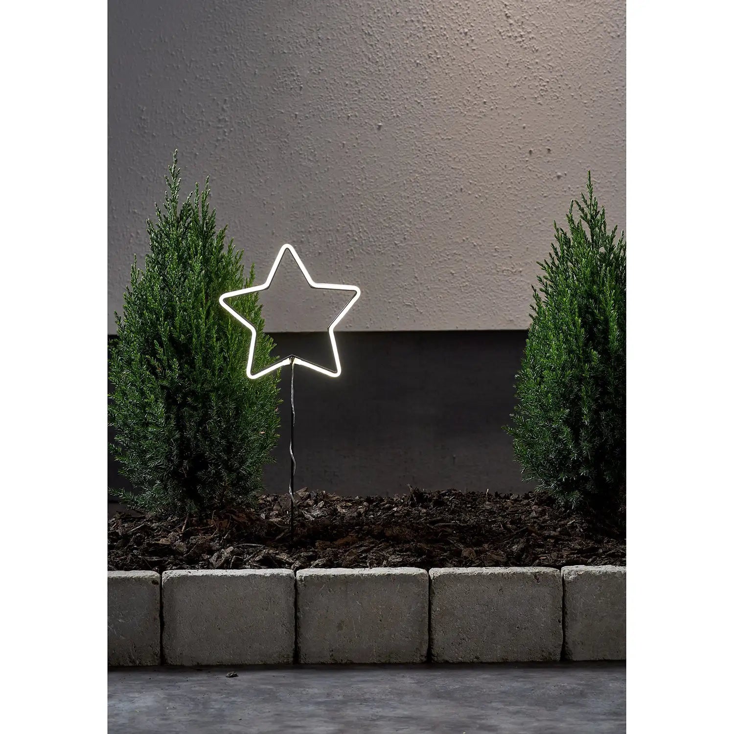 Illuminate your garden with a touch of festive magic this Christmas season using the enchanting Battery Operated LED Neon Star with a garden stake. Crafted with a charming blend of STEEL and PLASTIC, the enclosure is elegantly designed in BLACK, complemented by a luminous PLASTIC shade in pristine WHITE. This all-weather star radiates a warm glow, thanks to its built-in LED that ensures it shines bright, even in damp conditions with its WATER-PROOF (IP44) feature. Standing at 580mm in height, this star is a perfect addition to your outdoor decor, measuring 220mm in length and 15mm in width. Weighing just 0.33kg, it is easy to move and position wherever you desire. Operating at 4.5V DC, this star does not require a switch or batteries, making it hassle-free to use. For a touch of whimsical charm and festive cheer, let this LED Neon Star light up your garden space with its delightful presence.Specifications